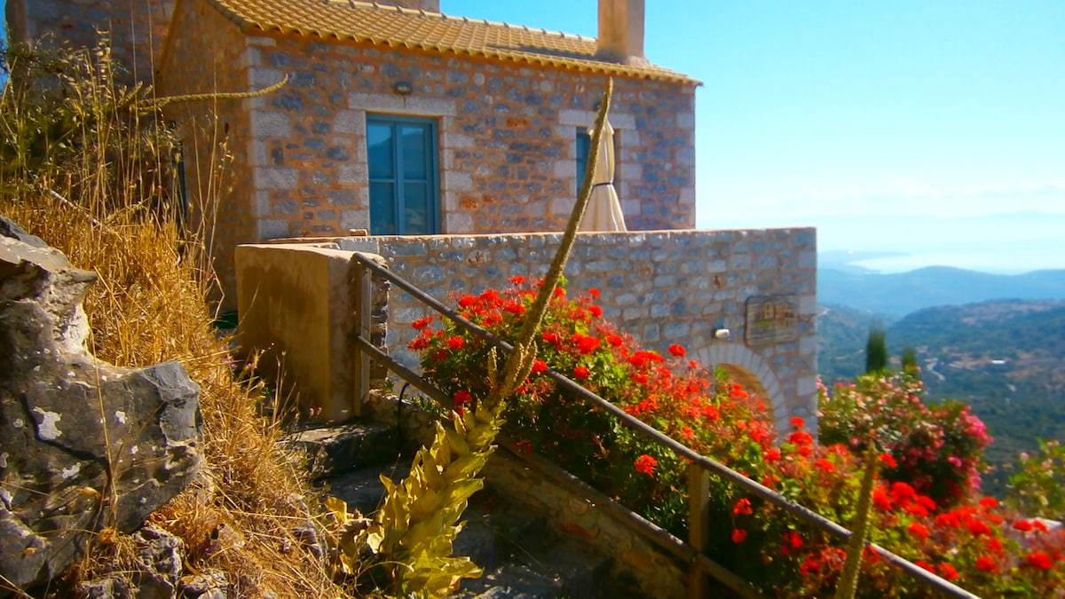 Traditional stone house with 2 big outdoor places to enjoy your breakfast at the rooftop with a breathtaking view or relax at the yard accompanied by the warm stillness of a summer afternoon. Ideal place for people who search for peacefulness and a nature getaway.