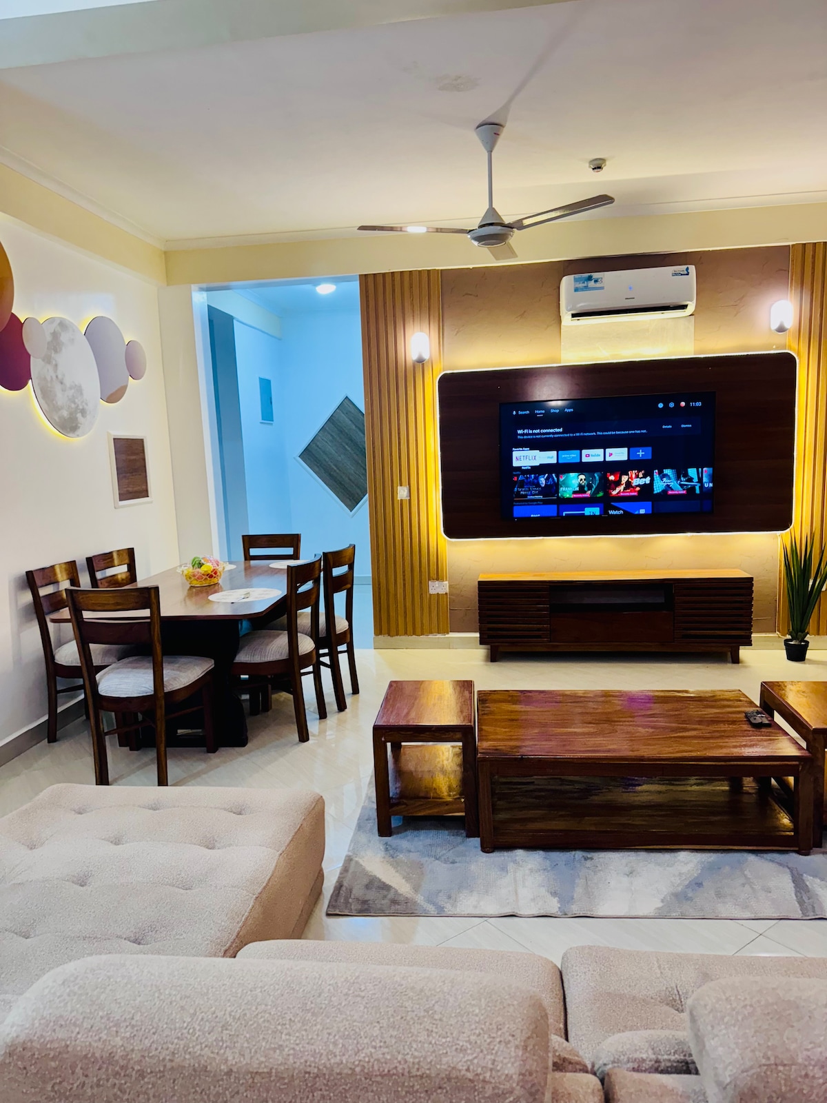 Ang tahanan ng Micnic sa Swahili, isang obra maestran na may 2 kuwarto na idinisenyo para sa mga taong nagpapahalaga sa magagandang bagay sa buhay. Mula sa masaganang interior nito hanggang sa mga first - class na amenidad nito, ginawa ang bawat detalye para mag - alok ng hindi malilimutang pamamalagi. Magpakasawa sa kaginhawaan, kagandahan, at sa royal treatment na nararapat sa iyo. Elegantly Finished 2 - Bedroom Home: Ang bawat sulok ng Swahili Home ay masusing ginawa gamit ang mga high - end na pagtatapos. Dalhin ang buong pamilya sa magandang lugar na ito na may maraming lugar para magsaya.