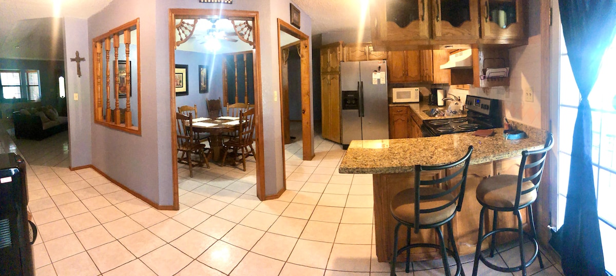 Bumalik at magrelaks sa tahimik at naka - istilong tuluyan na ito. Makakakuha ka ng isang napaka - komportableng 3 silid - tulugan 2 full bath home. 1 shower 1 tub shower. Master bedroom na may king size na higaan at 2 queen size na higaan sa iba pang kuwarto. May sariling TV ang lahat ng kuwarto. Malalaking screen sa Master at sala para sa tunay na gabi ng pelikula. Pinapayagan ng kusinang may kumpletong sukat ang iyong mga paghahanda sa pagkain. Ang bahay ay may 2 garahe ng kotse kung saan ang iyong mga sasakyan ay maaaring protektado mula sa araw sa maganda ngunit mainit na panahon ng RGV na ito. Malaking bakuran para sa kasiyahan.