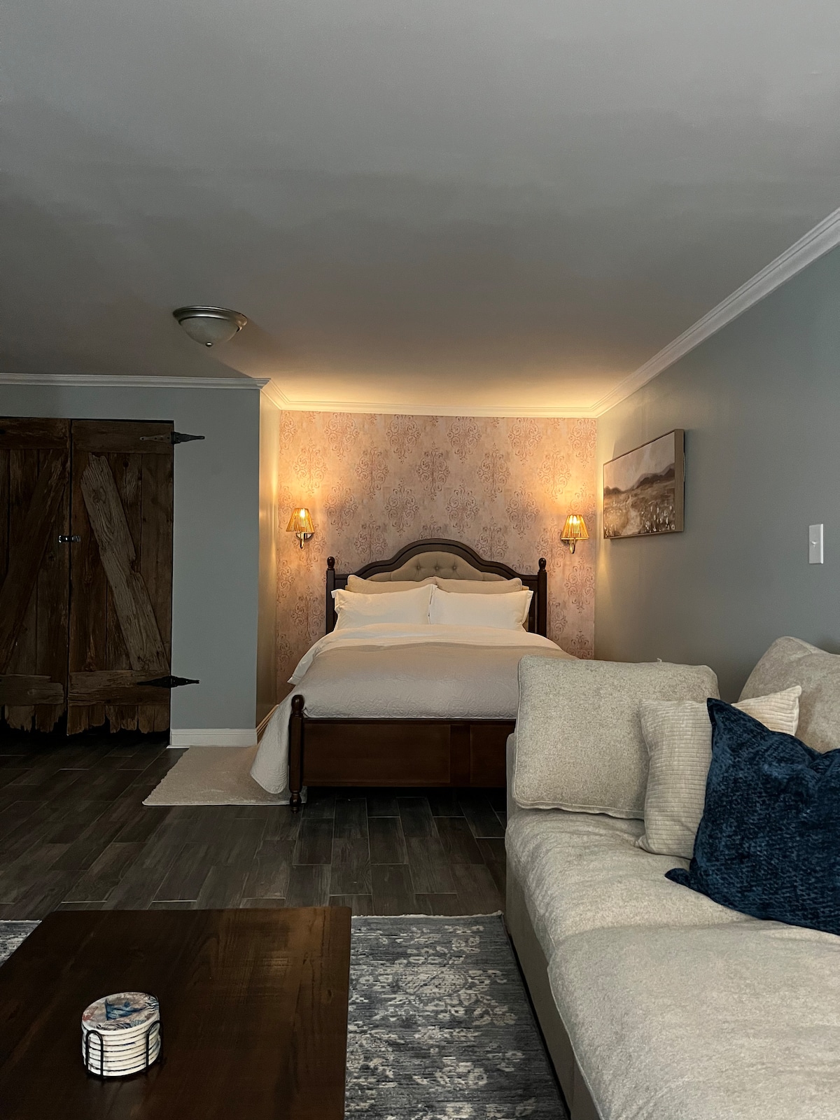 Ang iyong home base para tuklasin ang maraming trail at waterfalls ng lugar! Ilang minuto ang layo ng makasaysayang tuluyan na ito mula sa Blue Ridge Parkway. Masiyahan sa maluwang na silid - tulugan na may king - size na Nectar mattress at mararangyang banyo. Nakalakip ang maliit na kusina na may microwave, coffee maker, at refrigerator/freezer. Tikman ang paborito mong inumin mula sa breakfast nook na may bintana ng larawan na tinatanaw ang mga parang. Pribadong pasukan, bakod na bakuran na may mesa. 5 acre property na may lawa at wildlife. May mga pagkaing pang - almusal at Labahan