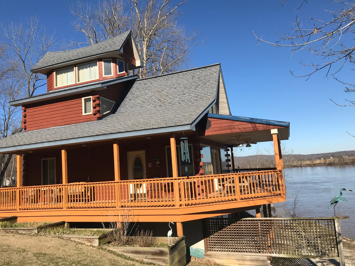 Ang aming Dawn Star cabin ay itinayo noong 1998. Nakatulog ito nang komportable sa 8 banyo na may 2 banyo. Kasama rito ang lahat ng kasangkapan at mayroon ding washer at dryer. Maaari mong laktawan ang kusina at kumain sa deck kung mas gusto mong gamitin na lang ang gas grill. Hihintayin ka ng 3 -4 na taong hot tub! Kamangha - manghang tanawin ng Ohio River mula sa beranda. May pantalan para sa pangingisda o pamamangka, pero kung mataas ang tubig, hindi maa - access ang pantalan. Matatagpuan ang cabin na ito sa isang pribadong rural na lugar sa tabi mismo ng ilog.