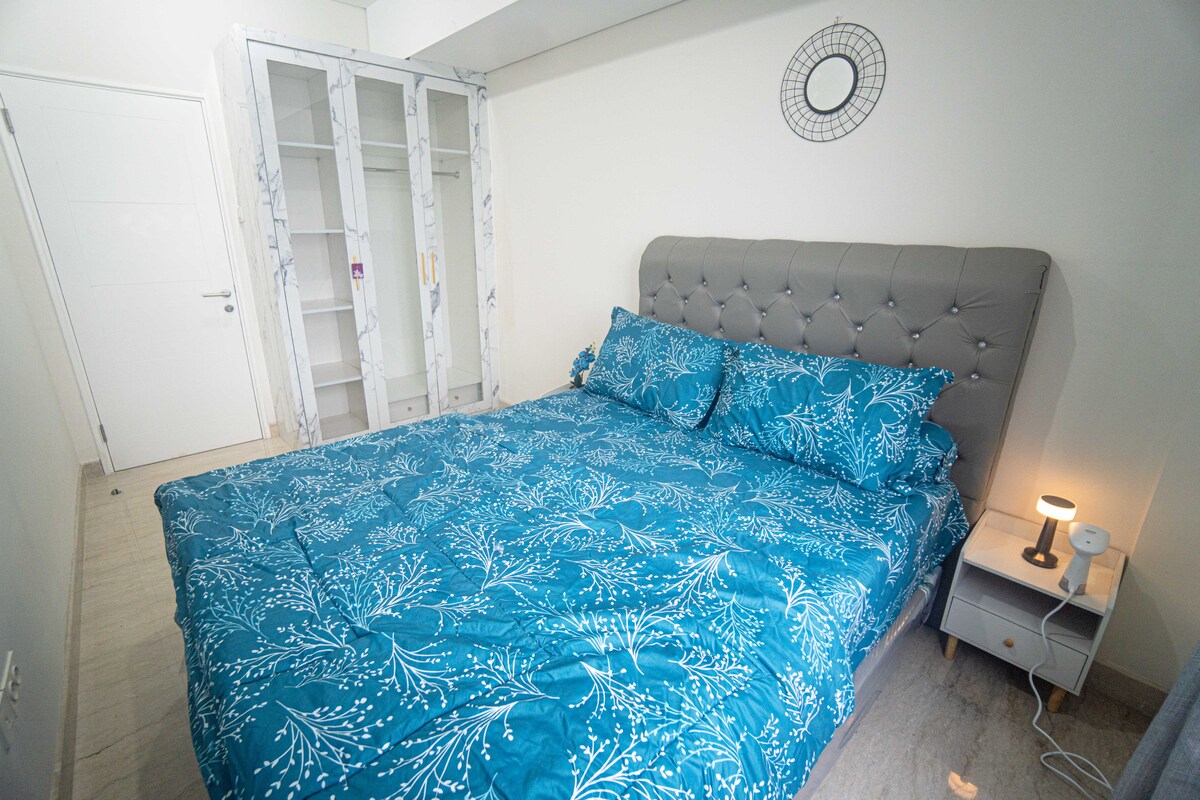 Located in strategic area, puts you near anything you need, work, leisure and relax. When you stay you will get the best facilities from swimming pool, children playground, gym and the hanging garden at 15 th floor. Condo 1 BR • King Size Bed (180x200cm) • Air conditioned Bed room • Kitchen and utensils • Cozy air conditioned Living room with TV • Water Heater, wardrobe, hangers • Shoe cabinet • Toiletries e.g towels , shampoo, shower gel, tissue paper provided • Smart door lock