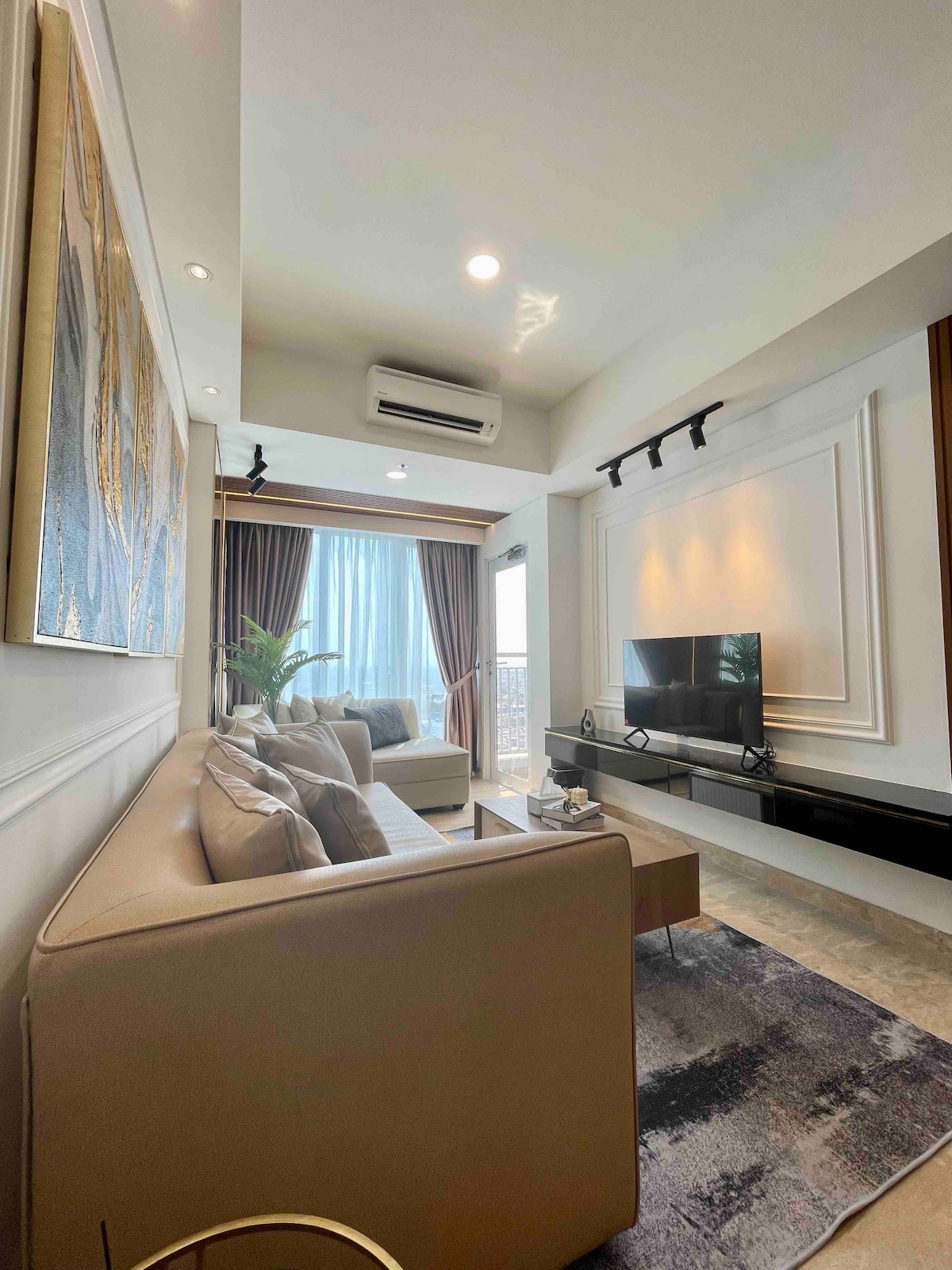 Bagong na - renovate na Apartment Podomoro City Deli Medan Nag - aalok ng marangyang pamamalagi na may disenyo ng Cozy & Homey. Makakakita ka ng mapang - akit na magandang tanawin ng lungsod mula mismo sa kaginhawaan ng iyong bintana at balkonahe. Matatagpuan sa Sentro ng lungsod ng Medan. • Direktang access sa Podomoro Mall mula mismo sa Lobby ng apartment • Kabaligtaran ng JW Marriot Hotel • Sun & CP 8 Minuto • Napakagandang Tanawin ng Lungsod • Full Furnish Lux • 2 unit na Big Smart TV (na may Netflix, youtube, atbp.) • High - speed na wifi • Air Purifier