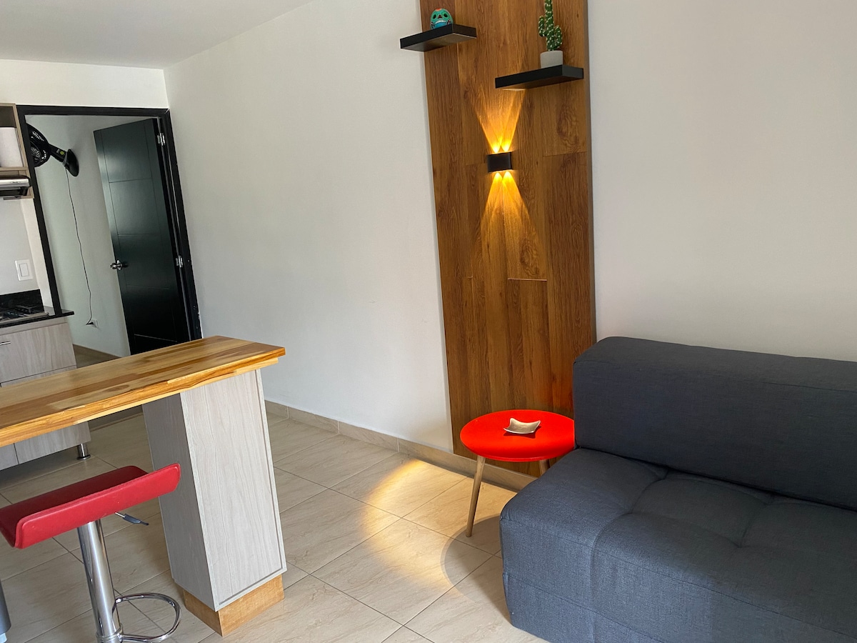 Angkop sa gitna at tahimik na lugar ng Laureles. Mayroon itong dalawang kuwarto, isang silid - tulugan na hiwalay sa lugar ng kusina, maliwanag, cool na may balkonahe na may tanawin, kusina na may kagamitan. Ang dekorasyon ay moderno at elegante para makagawa ng komportable at nakakarelaks na kapaligiran. Mainam ang lokasyon para sa pagtuklas sa lungsod nang naglalakad, dalawang bloke mula sa dekada 70 at may iba 't ibang uri ng mga restawran at club sa malapit ngunit walang ingay na pumipigil sa isang mahusay na pahinga.