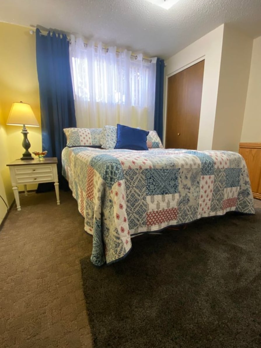 Welcome sa "The Hat's Lower Level". Bagong ayos na modernong basement suite na maliwanag, bago, at pinag‑isipang idisenyo. Ang "Lower Level" na suite na ito ay nasa gitna ng shopping at downtown. Sa loob ng 2 bloke ng Fair Grounds, arena, at malapit sa mga coffee shop at restawran. Narito ka man para sa isang event o para lang magpahinga, nag‑aalok ang suite namin ng perpektong kombinasyon ng kaginhawaan, kaginhawaan, at personalidad.