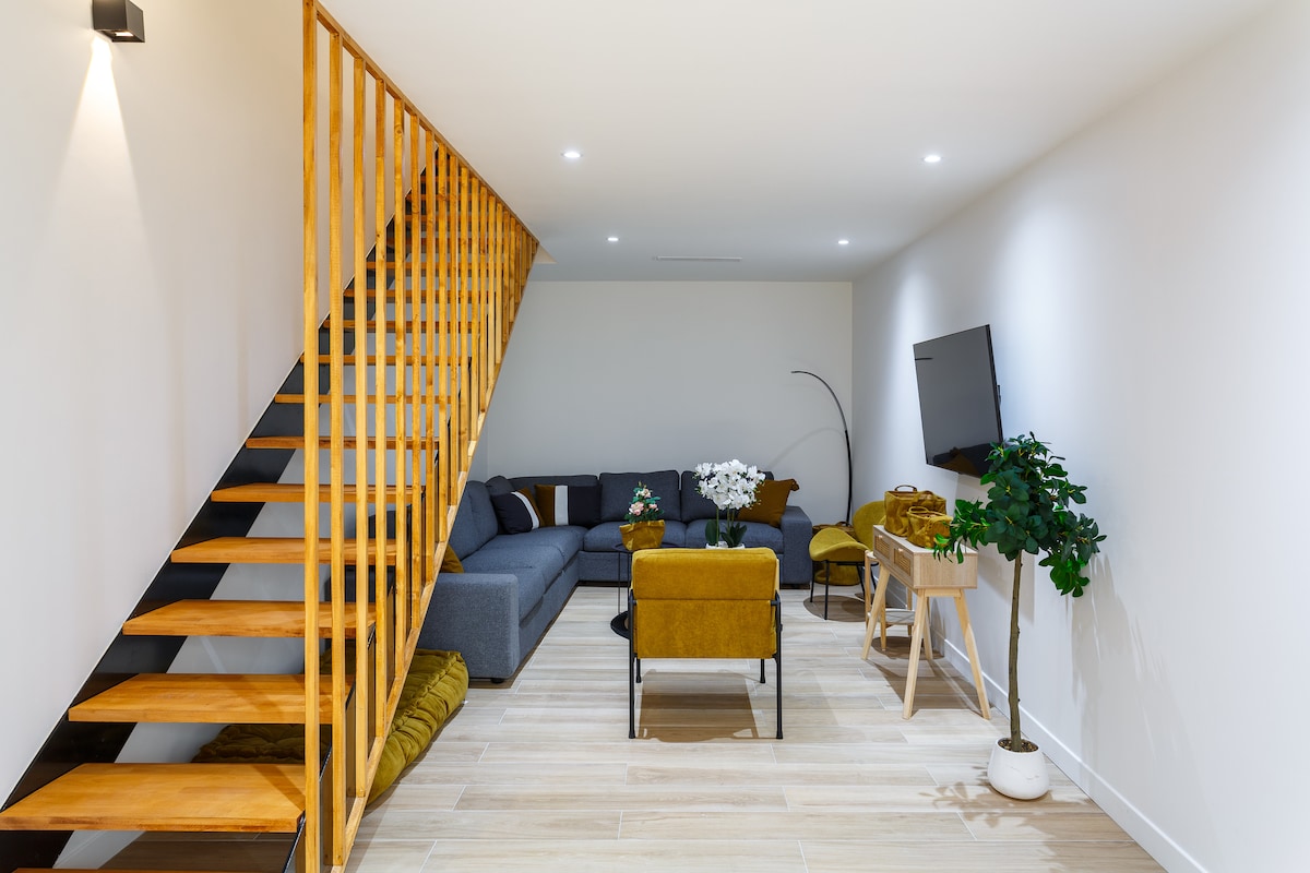 Pumasok sa makasaysayang 138 taong gulang na gusali na may nakalantad na mga pader ng ladrilyo at modernong microcement finish. Kasama sa aming kuwarto ang queen - size na Tempur bed ng EU, na tinitiyak na pinaka - komportable para sa aming mga bisita, at 65 - inch TV sa ilalim ng matataas na kisame. Magsaya sa kaginhawaan ng isang eco - friendly na tropikal na ulan ( mainit at malamig ) at isang magandang gawa, kontemporaryong kusina. Binibigyang - priyoridad namin ang isang maaliwalas na kapaligiran sa pakiramdam ng isang hotel.