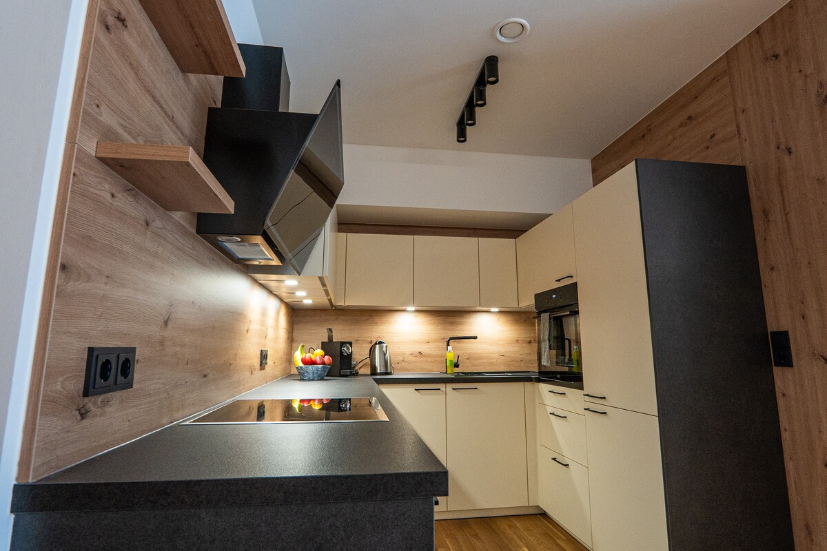Eleganteng penthouse apartment sa modernong estilo ng alpine sa talampas ng Seefelder. Ang maaliwalas at tahimik na apartment sa huling palapag ay idinisenyo para sa hanggang 4 na tao nang kumportable. Mayroon itong maliwanag na living - dining area na may modernong kusinang kumpleto sa kagamitan, dalawang double bedroom, dalawang banyo, floor heating, libreng Wi - Fi at napakalaking pribadong terrace. Mula roon, masisiyahan ka sa mga nakamamanghang tanawin ng mga bundok at lambak ng Inn, sa tag - araw at taglamig.
