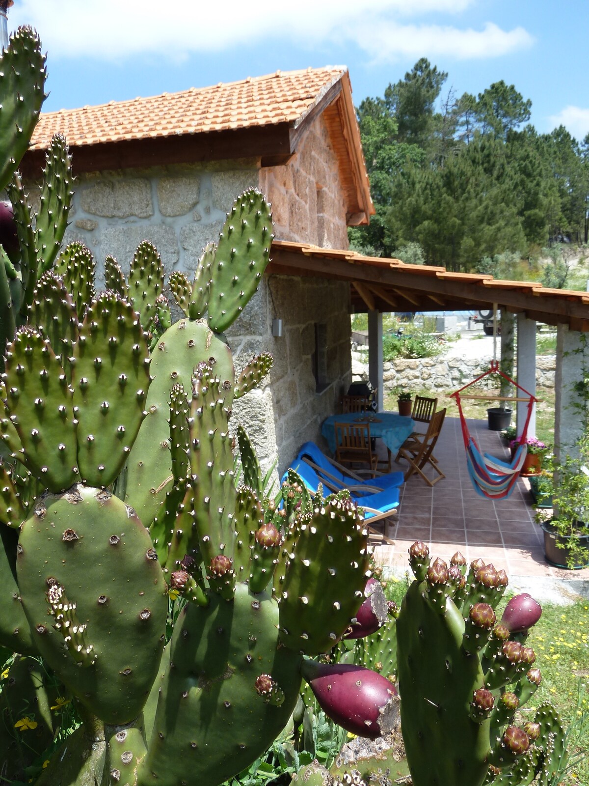 Mananatili ka sa aming magandang bukid, na walang ibang bisita. Malapit sa Serra da Estrela Mountains, maraming magagandang beach sa ilog at makasaysayang lungsod. Ito ay isang tradisyonal, komportable at pribadong granite cottage na matatagpuan sa isang tahimik na lambak ng ilog na napapalibutan ng kagubatan, mga ibon at wildlife, na may EKSKLUSIBONG paggamit ng aming salt water pool. ang bahay ay mainam para sa mga mag - asawa, mga pamilya (na may mga bata) hindi kami naniningil ng higit pa sa mga oras ng bakasyon, parehong mahusay na presyo sa buong taon, at mga alagang hayop (ngunit mangyaring suriin muna).