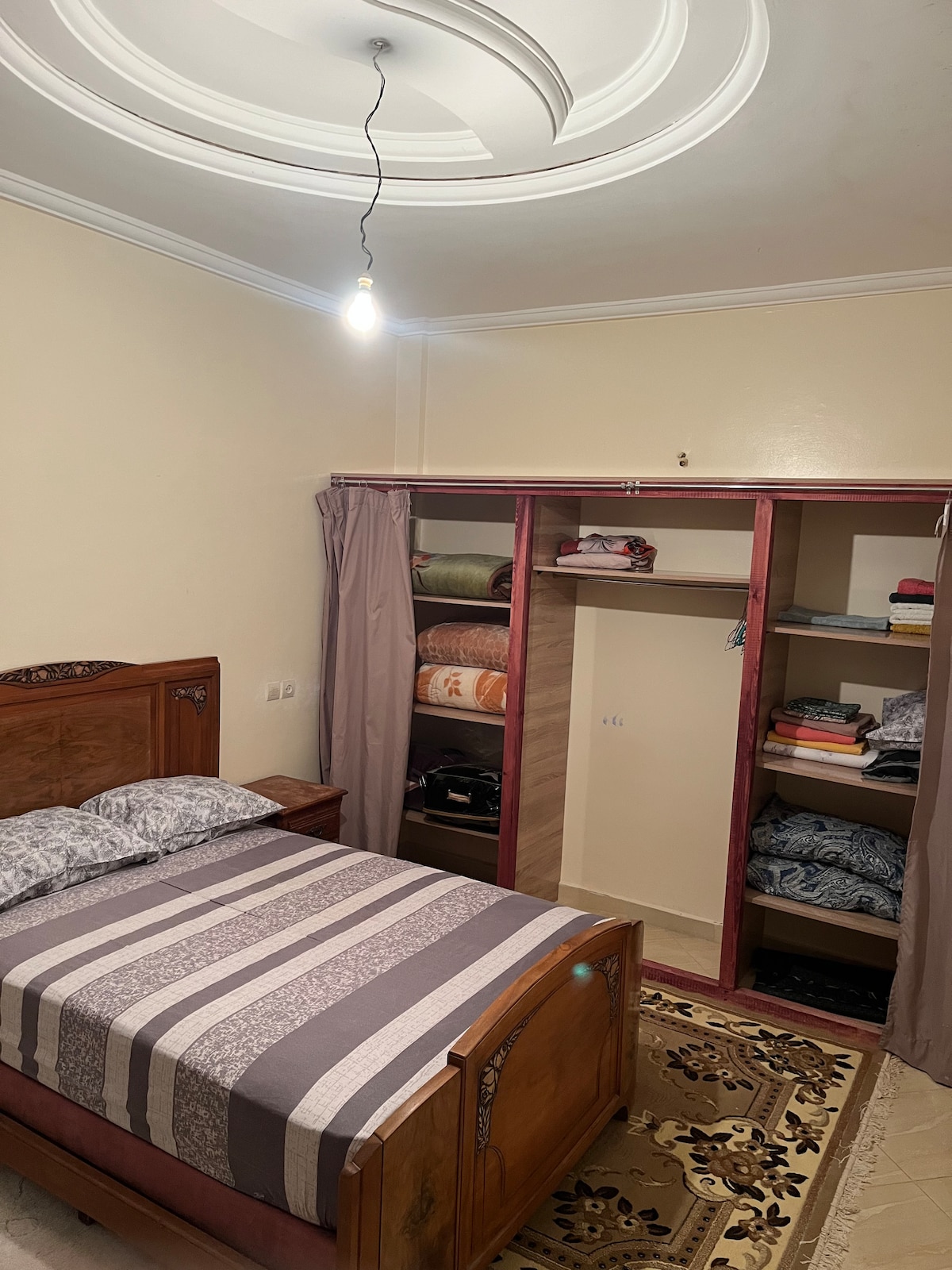Ang tahimik at tahimik na tuluyan na ito ay nag - aalok ng nakakarelaks na pamamalagi para sa buong pamilya na matatagpuan sa sentro ng lungsod ng meknes na may kumpletong elevator ng pribadong paradahan sa kusina at malapit sa lahat ng amenidad. ang tuluyan ay nakatuon lamang sa mga pamilya, mag - asawa na may sertipiko ng kasal. at mga seryosong tao. Paggalang sa mga kapitbahay at mga alituntunin sa tuluyan at sapilitan (ipinagbabawal ang mga party at malakas na musika.