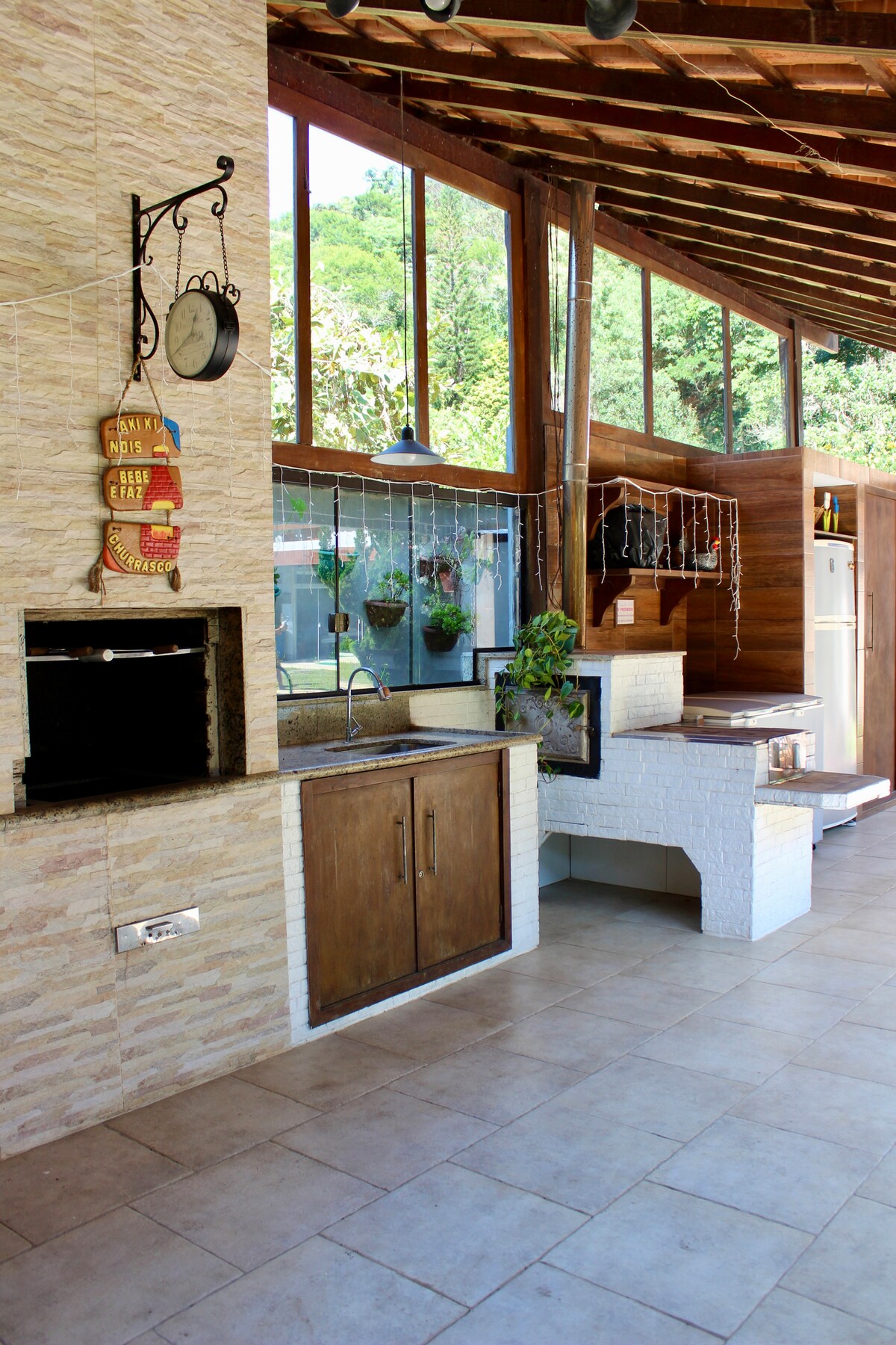 Pagrerelaks at kasiyahan. Sa gitna ng kalikasan, kung saan bukod pa sa mga halaman, madali kang makakakita ng mga maiilap na hayop. Piscina, Sauna, Campinho de futebol/Volleyball, barbecue, oven at wood stove, gourmet space, pool, totem, table tennis, diabol, videokê, external sound, isda para sa pangingisda. Dalawang kumpletong paliguan sa labas. Dalawang suite at isang panloob na mezzanine. Dalawang fireplace. Kung mas maraming bisita kaysa sa kontratista ang makikilala, gagawin sa Airbnb ang mga kinakailangang pagsasaayos.
