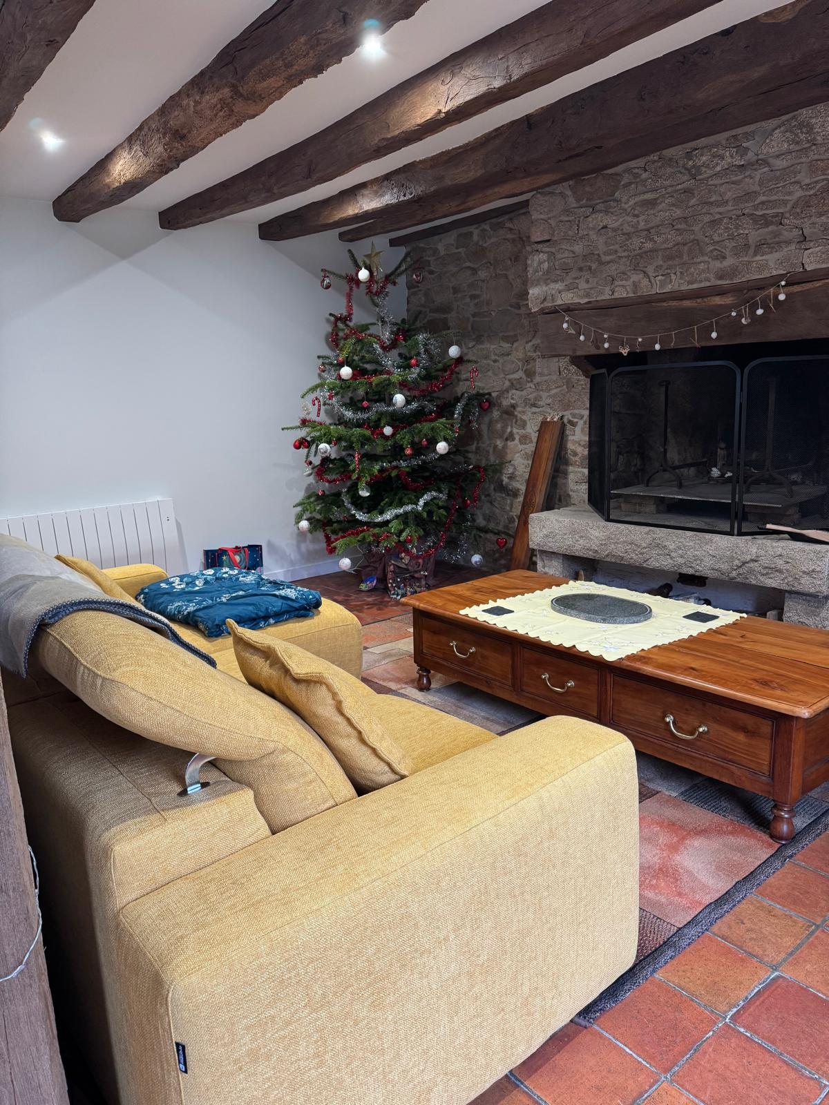 A hidden gem in the heart of rural Brittany located down a country lane. You step into an open plan kitchen/lounge which has a pine table and 4 chairs. In the lounge theres a coffee table, 2 stylish brown leather chesterfield sofas and a wall mounted smart tv with Netflix. In the sun room theres a log burner with 2 single chairs. A downstairs toilet/washing machine are in the utility. Upstairs are 2 large bedrooms which have super king beds, deep mattresses finished off with 9cm feather toppers.