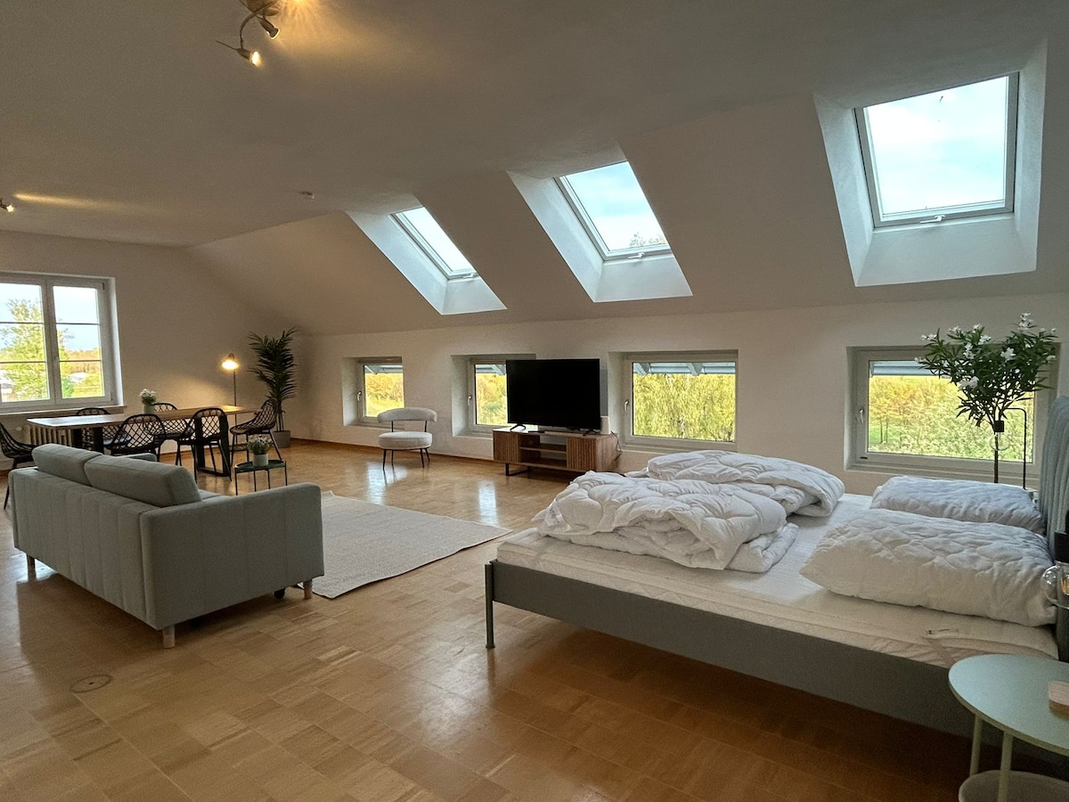 Magsaya kasama ang buong pamilya sa naka - istilong akomodasyon na ito. Purong kalikasan sa Dreiseithof na gawa sa kahoy na may mga kabayo, manok, at maraming espasyo para sa iyong mga anak. Direkta mula sa property na pupunta ka sa maraming hiking trail ng Schellenberg. Simbach am Inn / Braunau kasama ang lahat ng mga tindahan, 8 minuto sa pamamagitan ng kotse. Mapupuntahan ang tatsulok ng Rottal spa sa agarang paligid, Burghausen, Passau, Salzburg at Munich nang wala pang isang oras.