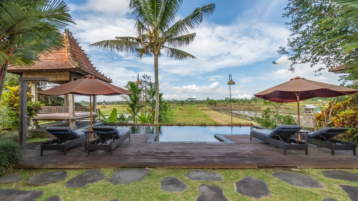 Kailangan mo ba ng mga tanawin ng paghiwalay, katahimikan, at mga nakamamanghang tanawin? Matatagpuan ang kaakit - akit na marangyang pribadong 1 - bedroom pool villa na ito sa mga napakarilag na terraced rice field. Sa pagsusulat man ng retreat, biyahe sa pananaliksik, digital nomad - ing o romantikong bakasyon, ito ang perpektong setting para makapagpahinga, makapag - isip at makagawa! Isang tahimik na bakasyunan sa kanayunan na 8 minuto lang ang layo mula sa Central Ubud. Bonus: nag - aalok kami sa aming mga bisita ng libreng paglalaba, pagpapatuyo at pamamalantsa dalawang beses sa isang linggo!