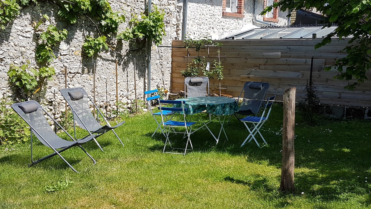 Sa isang makasaysayang nayon, sa gitna ng Chateaux de la Loire, maliit na independiyenteng farmhouse, papunta sa Loire sakay ng bisikleta, na nakaharap sa timog na may malaking nakapaloob na hardin ng mga pader kung saan matatanaw ang ilog. Ang bahay sa isang antas ay naliligo sa sikat ng araw; mayroon kang mga linen. Sa gitna ng Loire Valley na may pinakamagagandang kastilyo sa malapit, isang maaliwalas na one - bedroom country house na may malaking hardin kung saan matatanaw ang ilog at ang trail na "Loire à Vélo..