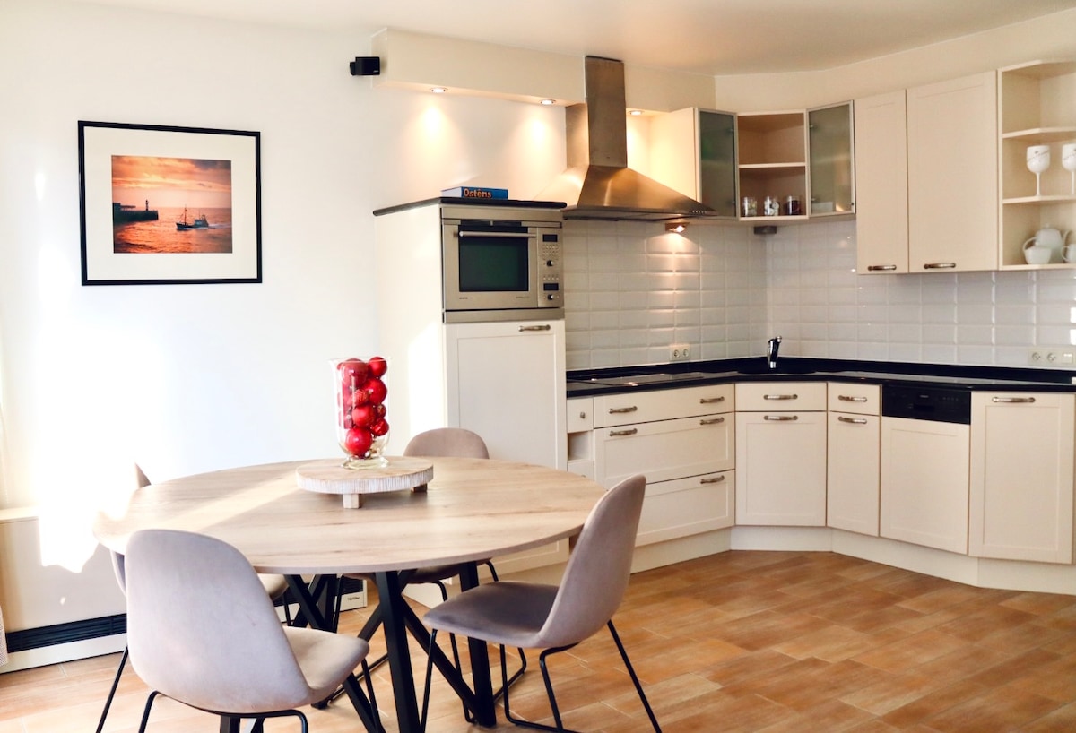 The Escapade will bring you an instant "at home" feeling. Comfort and luxury in full city center, near the station, fishing port and marina. Gastronomy, culture and fresh sea air are within walking distance.The beach can be reached within 10 min. Going from here on city trip to Bruges, Ghent or Brussels is no problem, the railway station is only 5 min walking. You will find many extras and small details that will make your stay even more pleasant.