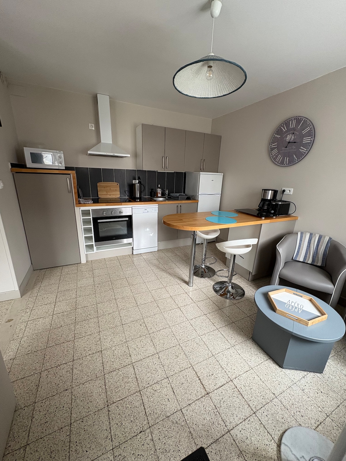 Maaliwalas na apartment na may 60 m2 ganap na inayos. Kuwarto na may 160 higaan, sofa bed sa upuan, TV, kusinang may kumpletong kagamitan, banyong may walk - in shower. Tamang - tamang akomodasyon para sa 2 hanggang 4 na tao. Sentro ng lungsod at mga kalapit na negosyo. Malapit sa Museo ng mga Silungan, Basilica, Albert Meaulte Airport at % {bold na kompanya. May available na serbisyo ng taxi para sa istasyon ng tren, paliparan o mga transfer para sa pamamasyal kapag nagpareserba. May mga tuwalya at kobre - kama.