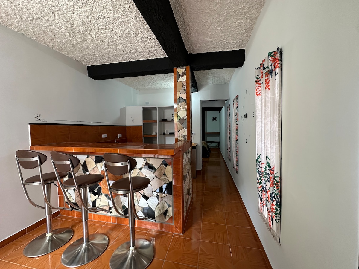 Komportableng apartment sa Merida na matatagpuan sa isang magandang lugar. Lahat ng serbisyo, mainit na tubig, matatag na serbisyo ng kuryente. Maganda ang panahon, mayroon din itong aircon sa mga kuwarto. Nilagyan ng refrigerator, washing machine, washing machine, microwave, blender, tosty arepas, coffee maker, coffee maker, mga kagamitan sa pagluluto, mga kagamitan sa pagluluto, mga kubyertos at plantsa. Malapit sa mga lugar ng turista ng lungsod tulad ng cable car, Plaza Bolívar, restawran, supermarket, atbp...
