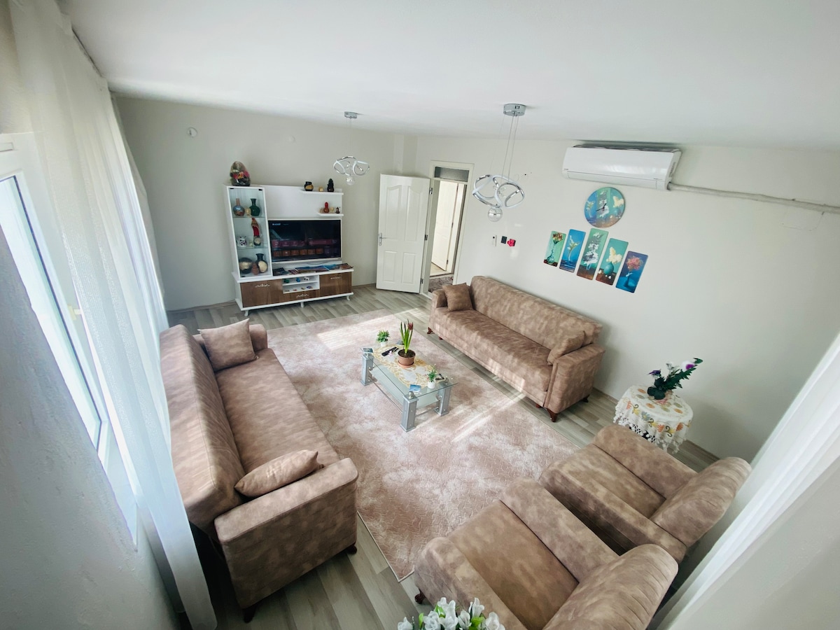 Kumusta, mga bisita. Ilang minuto lang ang layo ng apartment namin mula sa Pamukkale at komportable at maginhawa ito. May air conditioning at central heating ito kaya komportable ito kahit taglamig. Available din ang libreng access sa internet. Huwag mag-atubiling makipag-ugnayan sa amin o ipadala sa amin ang iyong mga kahilingan sa pamamagitan ng mensahe. Mag - enjoy sa bakasyon.
