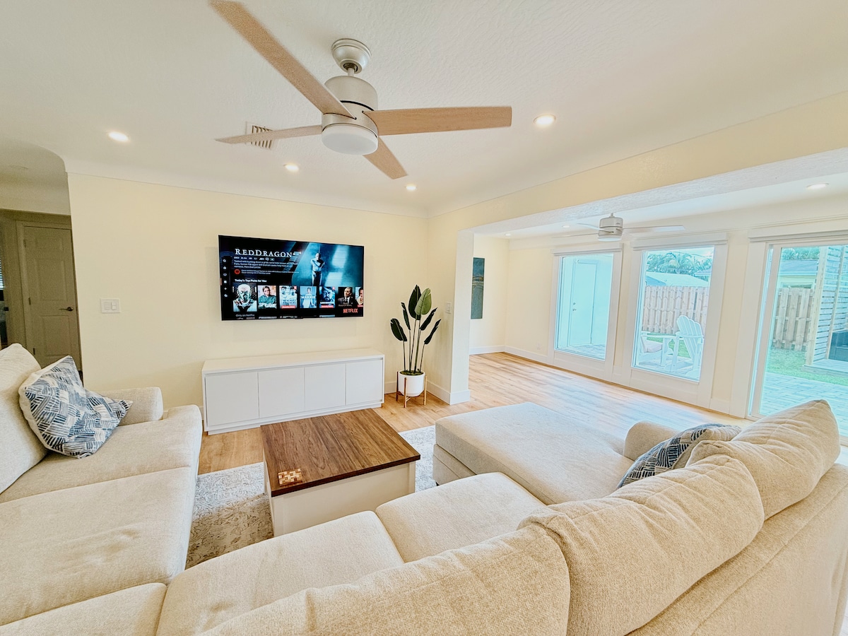 The home is 1600 sqft and your space is 335 sqft, private and cozy!!! It has a bedroom, living room and a full bath. parking is under carport for those tropical rainy days ( please park on the right side) it's shared space. There are two smart t.v which have Netflix, tubi, YouTube and others. the kitchenette has a keurig, compact size fridge and microwave. we have beach chairs/ towels, outside shower, hot and cold water. *cats on property!!! *dog named Lucy *ages 21 and over
