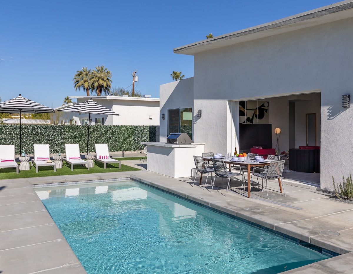 Welcome to Desert Bloom – Palm Springs ID #3575 | TOT Permit #7653 Escape to this stylish mid-century modern gem with a private pool and spa, nestled on a quiet corner lot with breathtaking mountain views. Just 5 minutes from downtown Palm Springs, Desert Bloom offers the perfect blend of relaxation and convenience. Lounge poolside, unwind in the serene backyard, and soak up the desert magic at your dream vacation retreat.