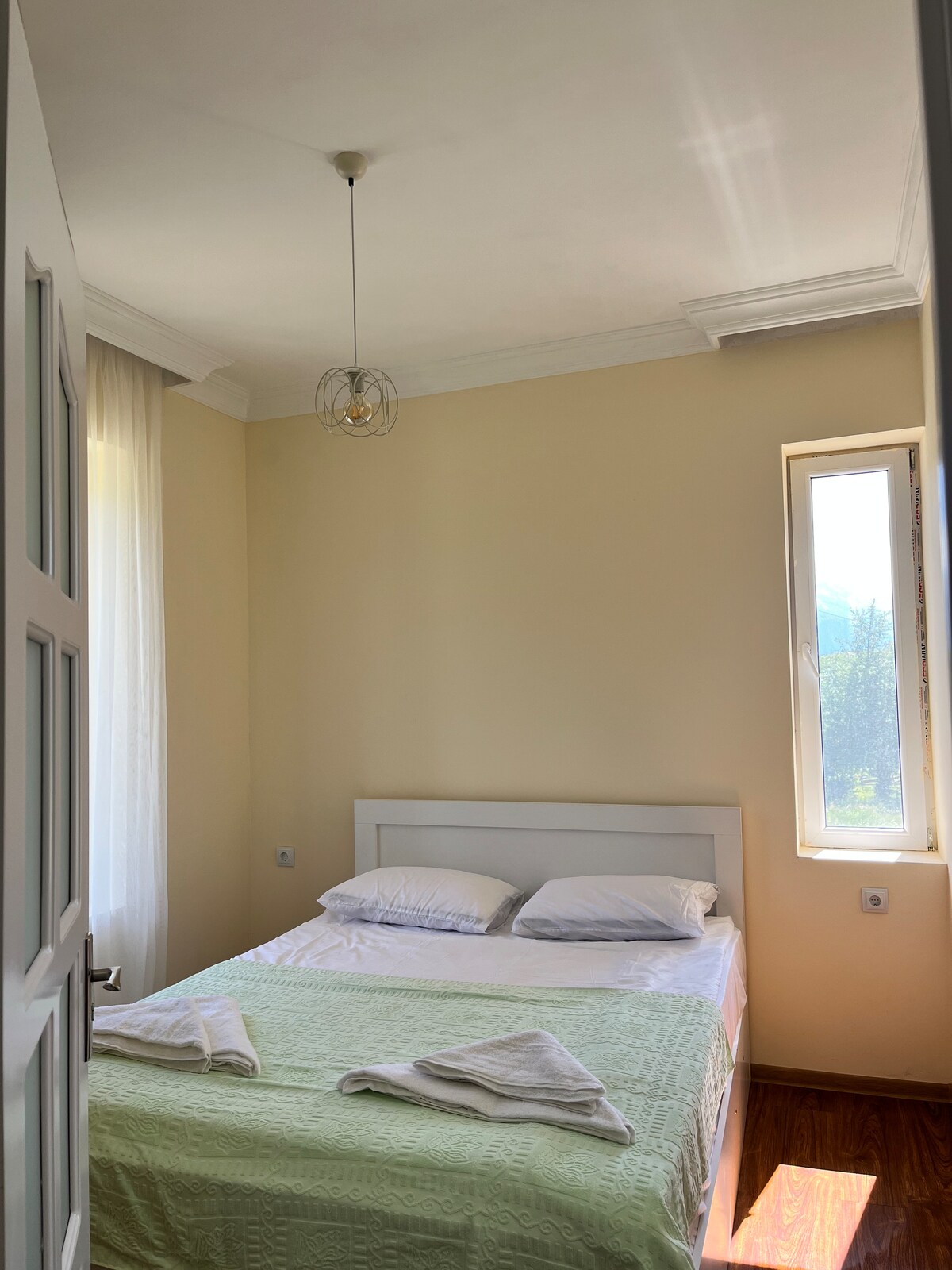 Ang Guesthouse "Ametapi" na matatagpuan sa gitna ng Mestia ay isang tahimik na lugar sa Svaneti. Kadalasang tinutukoy ito bilang pinakamahalagang tanawin ng rehiyong iyon, isa itong bahay sa sentro kung saan matatagpuan ang ika -8 siglong kastilyo ng AD. Ang kastilyo ay kilala sa tanawin ng mga bundok ng Svaneti at para sa dating may - ari nito na si Irakli Farjiani na gumuhit ng mga kuwadro na gawa ng nabanggit na tanawin ng magagandang tanawin. Napakahalaga ng tanawin ng Guesthouse na ito, dahil sa pagbibigay sa iyo ng kakayahang makita ang isa sa pinakamalaki at pinakamagagandang bundok sa Georgia (Ushba at Tetnuldi). Nag - aalok ang guesthouse ng mga asset at commodity na hindi maibibigay ng maraming accomodation sa Svaneti. Matatagpuan ang bahay sa 3 Givi Jafaridze Str. Para sa pagbisita at pag - upa sa lugar na ito maaari mong palaging kumuha ng bus sa Mestia mula sa Tbilisi na kung saan ay mura at may isang nakapirming timetable mula 6 am hanggang 8 pm o kung ikaw ay pakiramdam ng isang maliit na mas malakas ang loob maaari kang kumuha ng tren mula sa Tbilisi sa Zugdidi at mula sa Zugdidi sa Mestia na may bus na mura rin at magagamit hanggang 4 pm. Kung talagang gusto mong bisitahin ang lugar na ito sa maikling panahon, puwede kang sumakay ng eroplano mula sa Tbilisi o Kutaisi hanggang Mestia.