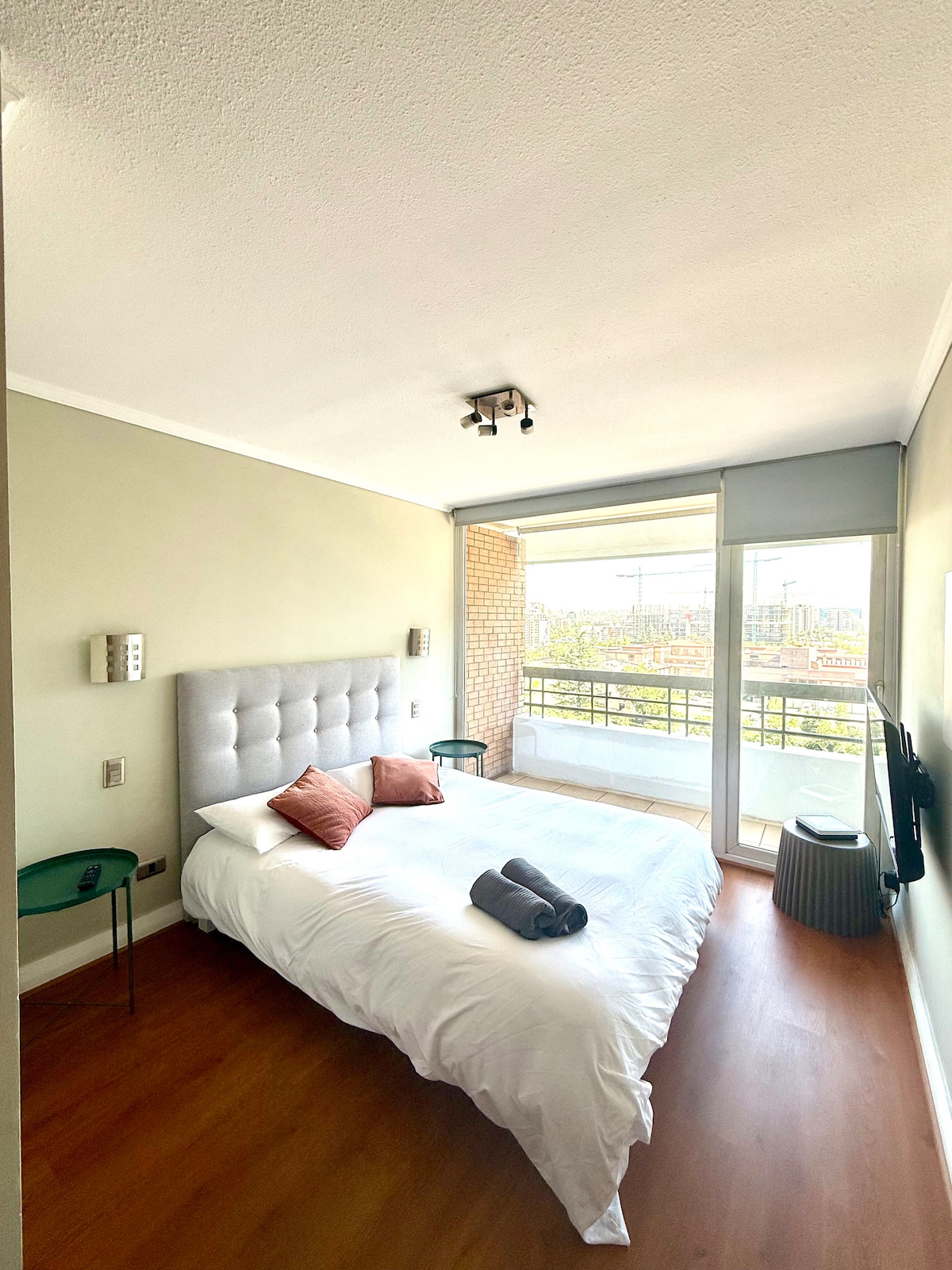 Magkaroon ng komportableng pamamalagi sa modernong apartment na ito na matatagpuan sa Las Condes, na isa sa mga pinakaprestihiyoso, pinakaligtas, at may pinakamagandang koneksyon na kapitbahayan sa Santiago. 5 minuto lang ang layo nang naglalakad mula sa Alcántara/Escuela Militar Metro May aircon (mainit/malamig) at terrace ang apartment. Bukod pa rito, kasama sa reserbasyon ang libreng paradahan sa loob ng parehong gusali. May napakagandang swimming pool sa pinakataas na palapag ng gusali na perpekto para sa pagpapakasaya sa pambihirang tanawin.