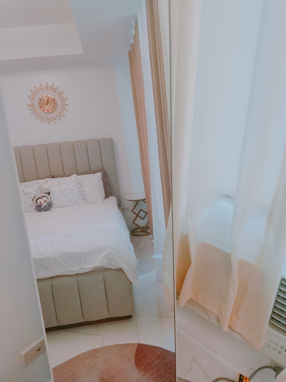 Mag-enjoy sa nakakapagpahingang at estilong studio na ito sa tuktok ng Venice Mall na 8 minuto lang mula sa BGC at magising nang may tanawin ng skyline ng lungsod. Makakapamalagi nang komportable sa eleganteng tuluyan na ito ang 3 may sapat na gulang o 3 may sapat na gulang at hanggang 2 bata. May mga eksklusibong amenidad na parang nasa resort, gaya ng malinaw na pool, gym, sauna, basketball/tennis court, playground, at business center. Mga shopping, kainan, fast food, arcade, play center, at sinehan na sakay lang ng elevator o manood ng pelikula sa 65"TV na may surround sound