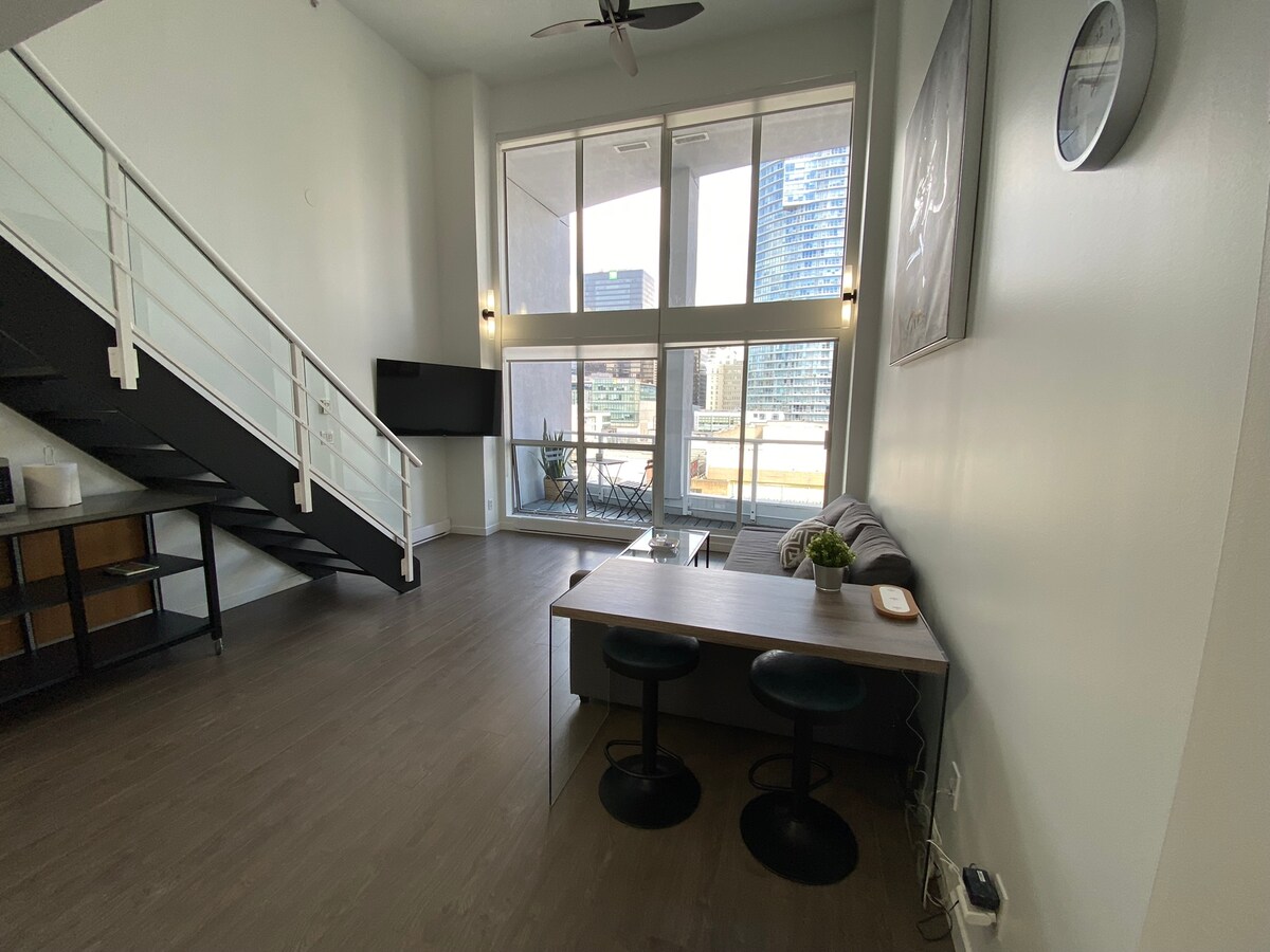 Ang hindi mapag - aalinlanganang pinakamagandang lokasyon sa bayan Malapit sa City Center, Skytrain, Robson Street, Yaletown, Rogers Arena, BC Place, The Vancouver Convention Center, at Stanley park Seawall. Dalawang palapag ang condo na ito na may 20 foot ceilings at malaking glass wall ng mga bintana. Malapit sa lahat ng pinakasikat na restawran, pamimili, mga nightlife at event venue na perpekto para sa mga bumibisita para sa kasiyahan o negosyo. Tandaang nasa pangunahing palapag ang banyo May kasamang paradahan.
