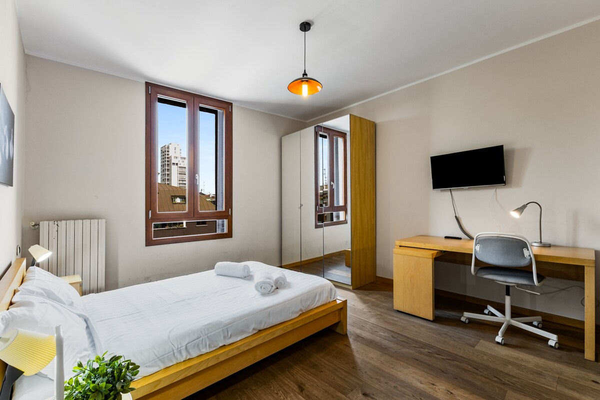 Penthouse na napapalibutan ng mga halaman kung saan matatanaw ang Milan. Matatagpuan ang apartment sa ikawalo at huling palapag at binubuo ito ng bukas na espasyo na may kusina at double sofa bed (na may dalawang topper para matiyak ang pinakamagandang posibleng pahinga), kuwartong may double bed at armchair bed at banyo. Ang apartment ay may mga nakamamanghang malalawak na tanawin ng Duomo at ng sentro ng lungsod, na maaaring pinahahalagahan mula sa cross - country window na may isang baso ng alak.