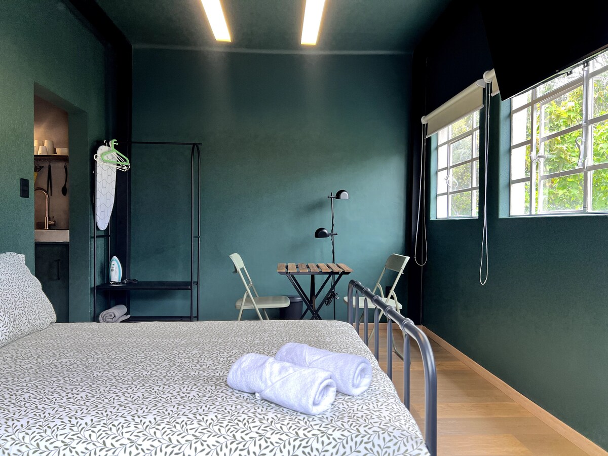 Perpekto ang maaliwalas na studio na ito para sa isang solong biyahero o mag - asawa na naghahanap ng pribadong lugar sa gitna ng Condesa, isa sa pinakamagagandang kapitbahayan sa Mexico City. Walang kapantay na lokasyon na may iba 't ibang kalapit na convenience store, restawran, pamilihan, coffee shop, parke at taquerías! Ang mabilis na internet sa pamamagitan ng WiFi at Ethernet, desk chair at pribadong maliit na terrace ay gagawin itong perpektong lugar para magtrabaho mula sa bahay. Madaling ma - accesible. Palaging nasa malapit ang mga serbisyo ng Ubers at paghahatid!