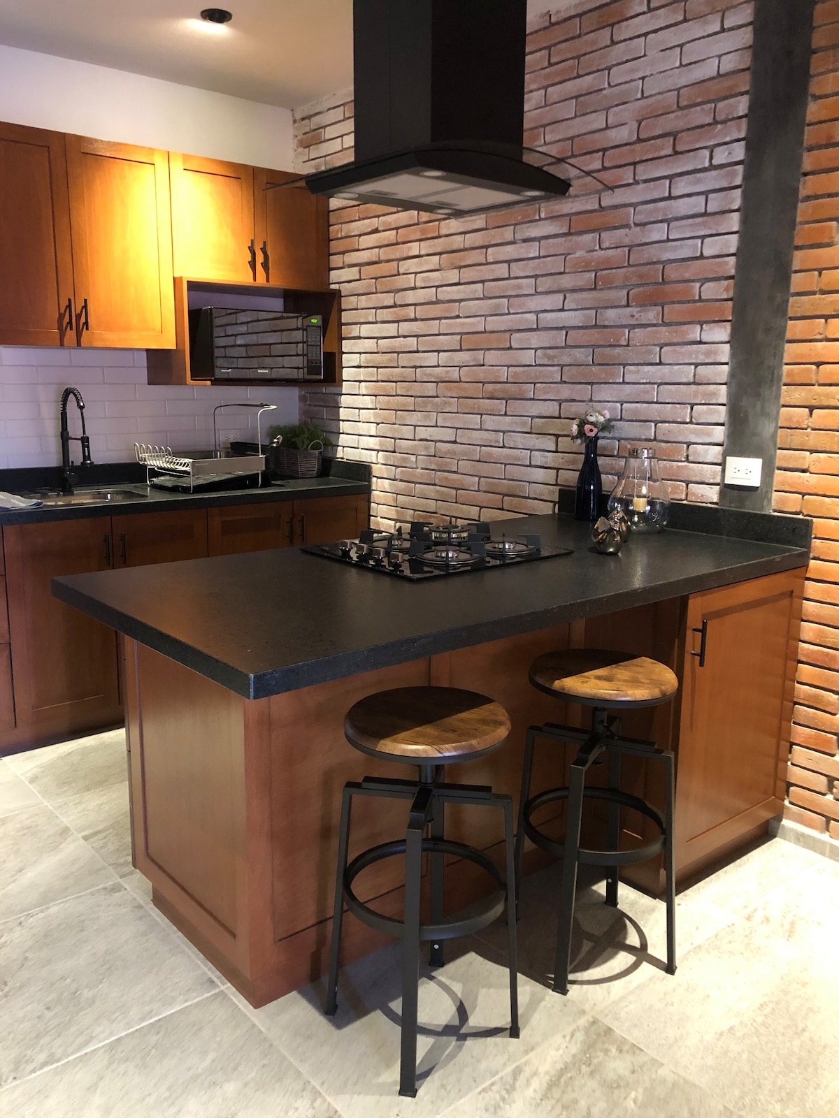 Bagong konstruksyon na may simple at praktikal na dekorasyon, mataas na kisame at maaliwalas. Ang banyo ay isang mahusay na sukat, mayroon lamang itong silid - tulugan ngunit ito ay maluwang na uri ng studio, ang kusina ay maliit ngunit may isang natitiklop na bintana na maaari mong ganap na buksan at makipag - ugnay sa labas. Ang deck ay katamtaman ngunit sapat na upang gumawa ng ilang pisikal o nakakarelaks na aktibidad.