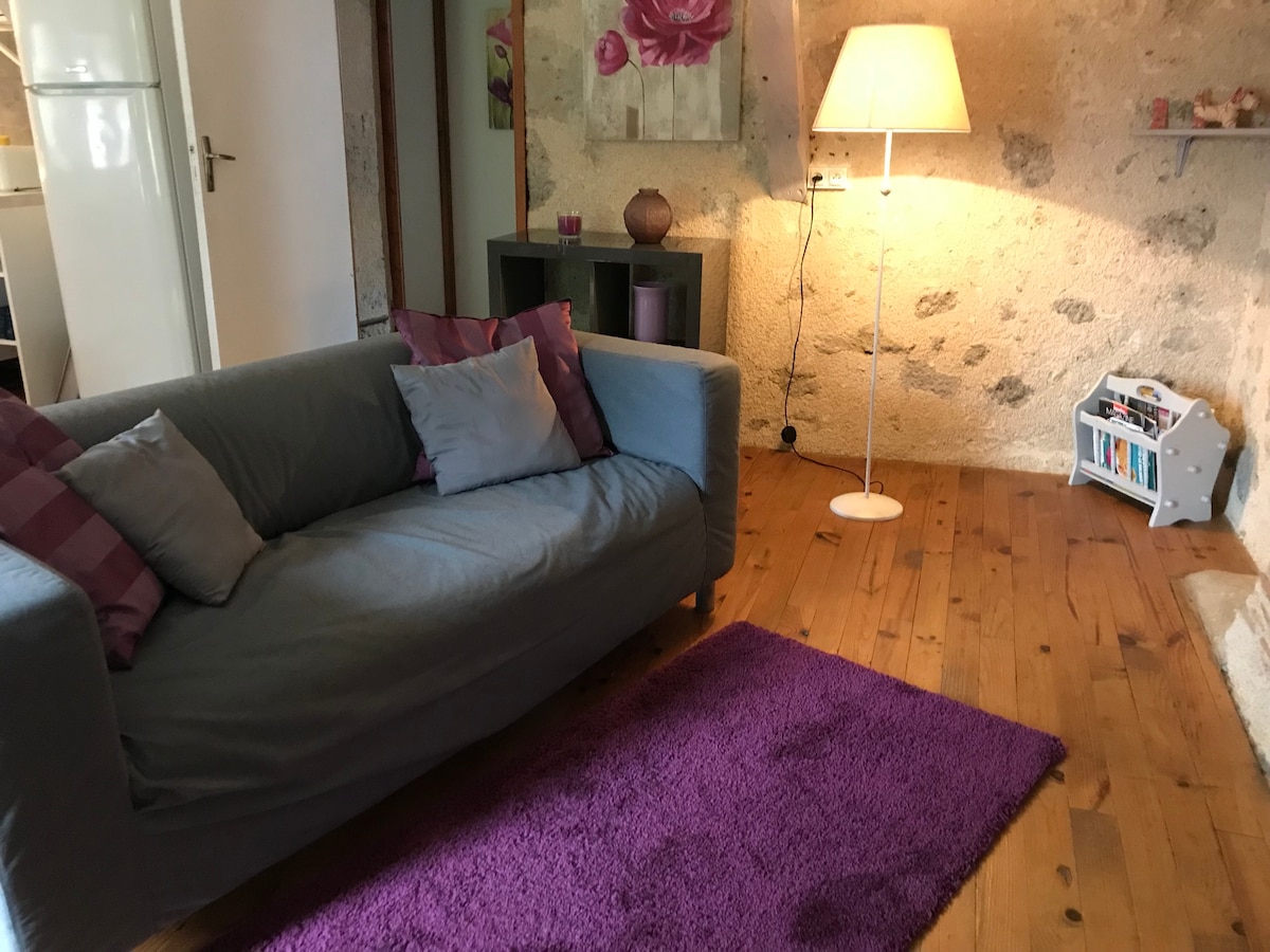 Maliit na bahay ng 20 m2 , sa kanayunan. Naibalik nang may pag - aalaga, may kasama itong sala na may double sofa bed, kitchenette, at mainit na chalet na uri ng banyo. Mayroon itong kahoy na nasusunog na kalan. Sinasamantala nito ang isang may kulay na lugar na nilagyan ng BBQ at mga muwebles sa hardin at isang lugar na bubukas papunta sa malawak na tanawin sa kanayunan. Isang stream sa kahabaan ng praire, mga hiking trail, at ang kalapit na medyebal na nayon ay nag - aanyaya sa iyong maglakad .