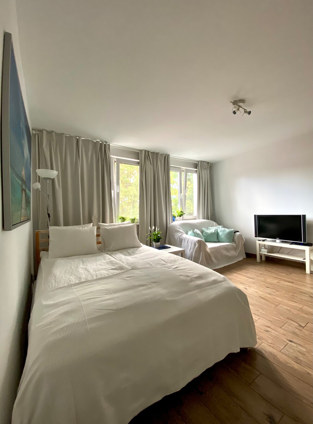 Bright, clean and cozy 2-level studio (26m2). Down: bathroom, kitchen, living room, comfy sofa, desk by a 3-meter window. Top: comfy double bed, wardrobe, desk. The studio is fully equipped (there's also wifi). It is located in a quiet area next to the Royal Route (the most representative part of Warsaw). Park, shops, restaurants, gym closeby. It's just perfect for: -tourists looking for a starting point for sightseeing -business travelers -people looking for a cozy and quiet place to rest :)