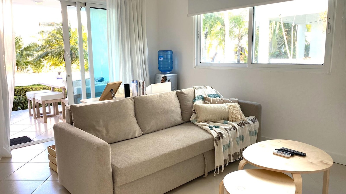 Ang pagtuklas sa lugar na ito ang pagpasok ng natural na liwanag sa madaling araw habang nagpapatuloy ang araw, ay nag - iimbita sa iyo sa isang lubhang nakakarelaks na bakasyon, na puno ng kapayapaan, kung saan maaari mong tamasahin ang bawat isa sa mga detalye na idinisenyo upang pasayahin at sorpresahin ang aming mga bisita. na may sariwa at beachy na dekorasyon kung saan mula sa bawat lugar maaari mong makita ang Dagat Caribbean at tamasahin ang mainit na hangin nito.