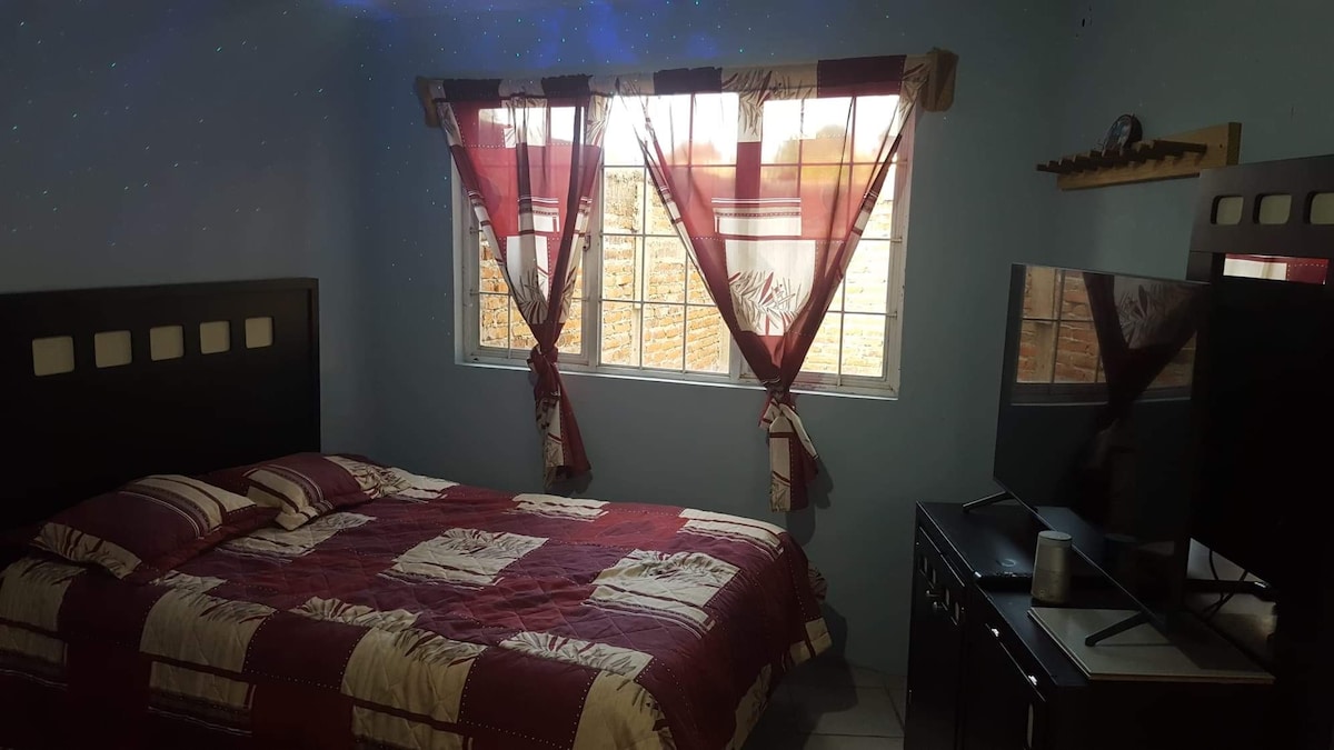 Located in the center of Atemajac de Brizuela Master bedroom with full bathroom 2 full beds fits up to 4 people Location on private property with a parking garage,2 min walk from the plaza wifi,cable,smart tv available Localizado en el Centro del Pueblo Recamara Privada con baño completo y 2 camas matrimoniales para 2 o 4 personas en propiedad privada,cochera para carro,2 minutos de la plaza caminando. Wifi,Smart TV, cable disponible