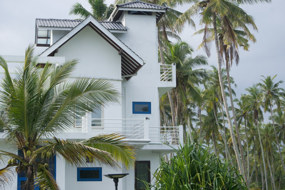 Isang European owned, self - catering beach house sa isang liblib na baybayin sa Thalaramba, ilang minuto lang mula sa masiglang Mirissa at nag - aalok ng naka - istilong tuluyan. Perpekto para sa mag - asawa sa master bedroom at sa bagong binagong pangalawang silid - tulugan may twin single bed para sa 2 bata o 2 single adult. Masarap na pinalamutian ng estilo ng kolonyal na Sri Lankan na may hiwalay na silid - upuan at kusinang may kumpletong kagamitan. Koneksyon sa fiber wifi na may 100 mbps para sa mga nagtatrabaho bilang mga digital nomad. Walang AC kundi may mga tagahanga.