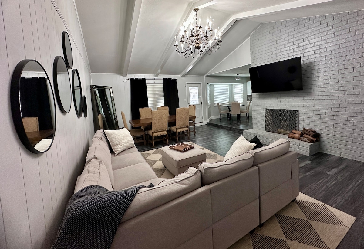 Maligayang pagdating sa aming tuluyan na malapit sa mga restawran, tindahan, at lugar ng libangan! Sa pamamagitan ng bukas na layout ng konsepto, perpekto ang aming kaaya - ayang tuluyan para sa nakakaaliw at pagtanggap ng maraming bisita. Masiyahan sa kusina na kumpleto ang kagamitan, lugar sa opisina, at katiyakan ng malinis na kapaligiran. Tandaan ang aming walang patakaran para sa alagang hayop (malugod na tinatanggap ang mga gabay na hayop nang may mga karagdagang alituntunin). Napakahalaga sa amin ng iyong kaligtasan. Nilagyan ang aming tuluyan ng mga panseguridad na camera at sensor ng paggalaw. Mag - book na para sa hindi malilimutang pamamalagi!