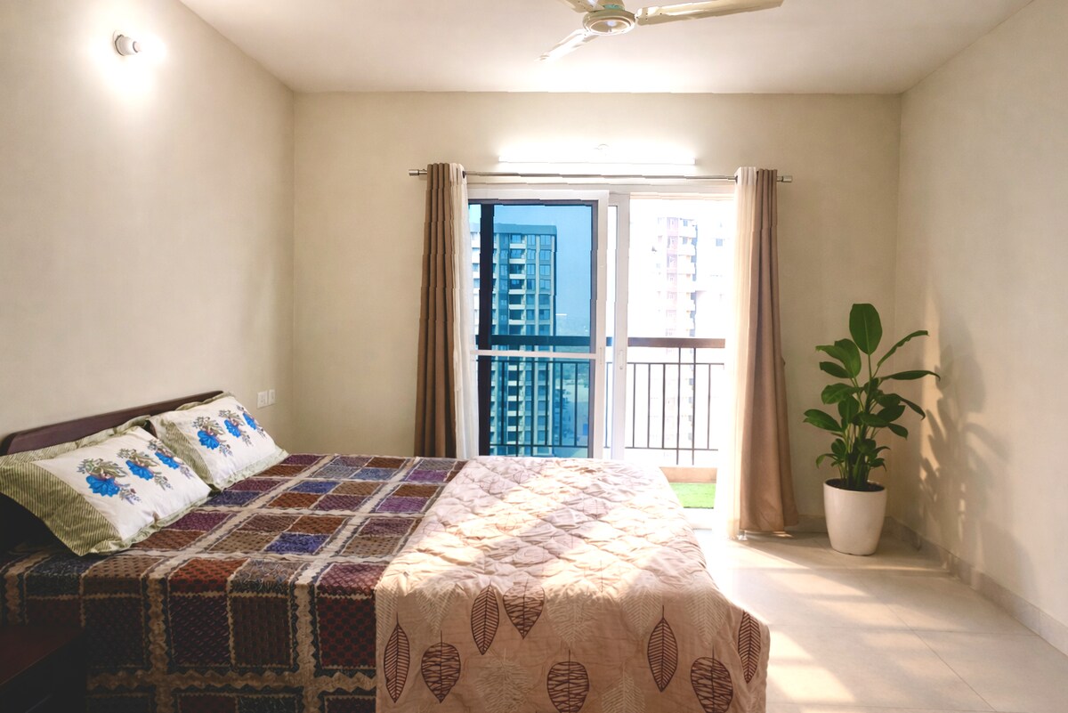 Makaranas ng marangyang pamumuhay sa kamangha - manghang 2.5 Bhk apartment na ito, na ganap na matatagpuan sa isang nangungunang lokasyon. I - unwind sa estilo gamit ang: 3 maluwang na silid - tulugan, kabilang ang 2 king - size at 1 solong AC na kuwarto Mga modernong amenidad, na nakikipagkumpitensya sa mararangyang suite Pangunahing lokasyon, na may: 7 minutong lakad papunta sa AIIMS 5 minutong lakad papuntang IIM Tangkilikin ang perpektong timpla ng kaginhawaan, kaginhawaan, at pagiging sopistikado sa pambihirang apartment na ito.