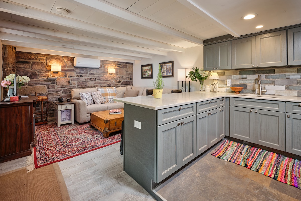 Matatagpuan sa gitna ng Frenchtown NJ, makikita mo ang kaakit - akit na nakatago sa mga mayabong na hardin ng River Witch Cottage. • Ibalik ang iyong sarili sa isang marangyang queen bed • Maghanda ng simpleng pagkain sa kusina na kumpleto sa kagamitan • Pakanin ang iyong sarili sa kagandahan ng isang pribadong lugar ng kainan • Magrelaks nang komportable sa tabi ng magandang gas fireplace • Pabatain sa mga jet ng jacuzzi tub, na magbabad sa ilalim ng natural na liwanag ng mga skylight • Morning coffee o evening wine sa tahimik na setting ng pribadong patyo sa labas