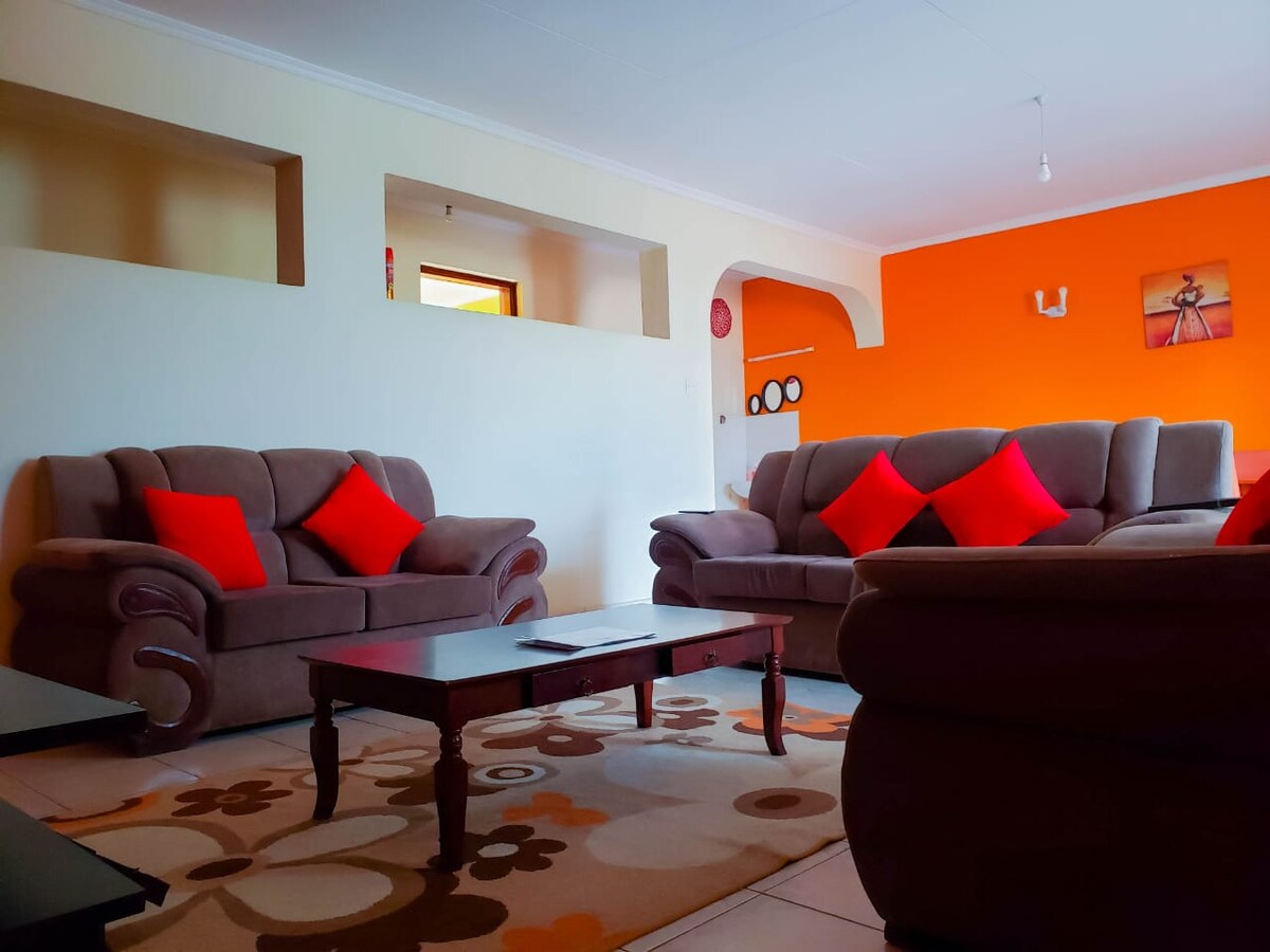 Ipinagmamalaki ng Aryana Furnished Apartment ang isang 4 na silid - tulugan na modernong fully furnished na maisonette na matatagpuan sa isang tahimik na setting ng nayon sa gilid ng lawa ng Lungsod ng Kisumu. Nasisiyahan kami sa pagbibigay ng hospitalidad sa lahat ng uri ng mga biyahero mula sa mga biyahero sa bakasyon hanggang sa pamilya na may mga bata - Mayroon kaming kaibig - ibig na malaking naka - air condition na sala - Malaking semi - open plan na modernong kusina - Hiwalay na dining area na may kumpletong restaurant styled stools - Mga eleganteng washroom na walang bahid - Sapat na paradahan