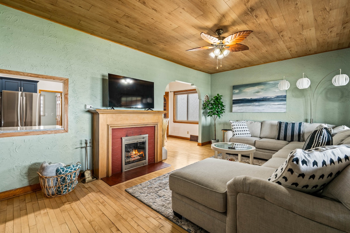Maligayang Pagdating sa Happy Days House! Ina - update ang komportableng bahay na may kumpletong kusina, kumpletong silid - kainan na may mga tanawin, kaakit - akit na sala na naka - angkla sa fireplace, na may queen sofa sleeper. Mag - enjoy sa kape sa beranda kung saan matatanaw ang kakaibang kalyeng may puno. Magtipon sa paligid ng fire pit, kumain sa labas, o pumasok sa hot tub (spring hanggang late fall amenity) sa pribadong bakuran. Sentro ang lokasyon - AMF, Zoo, Fiserv, downtown, atbp.