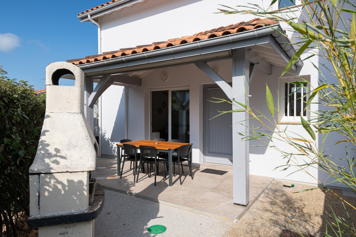 📍Lokasyon ✔ Beach na 2 minuto lang ang layo kapag naglakad (100 m) ✔ Kagubatan na 3 minuto lang ang layo kapag naglakad (150 m) ✔ Mga tindahan at restawran na 5 minuto lang ang layo kapag naglakad 🏡Kaginhawaan ✔ Reversible air‑condition sa bawat kuwarto ✔ Bago, maliwanag, at komportableng bahay ✔ Hahandaan ang mga higaan pagkarating + mga tuwalya ✔ Perpekto para sa mga pamilya o grupo 🌿Mga Exterior ✔ Terasang may mesa at BBQ ✔ 3 duyan ✔ Mga string light para sa mga gabi mo 👉Mahalaga: Hindi pa naka‑landscape ang hardin, at nag‑apply ng diskuwento para maipakita ito sa malinaw na paraan :)