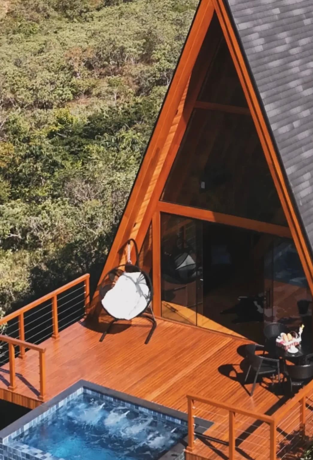 Desconecte-se da rotina e viva uma experiência única em nossa cabana estilo A-Frame. Com arquitetura moderna, fachada de vidro e vista panorâmica para a natureza, o espaço foi pensado para proporcionar conforto, privacidade e momentos inesquecíveis. Relaxe no deck privativo ou aproveite a hidromassagem enquanto aprecia o pôr do sol. Um refúgio perfeito para descansar, renovar as energias e viver dias especiais.