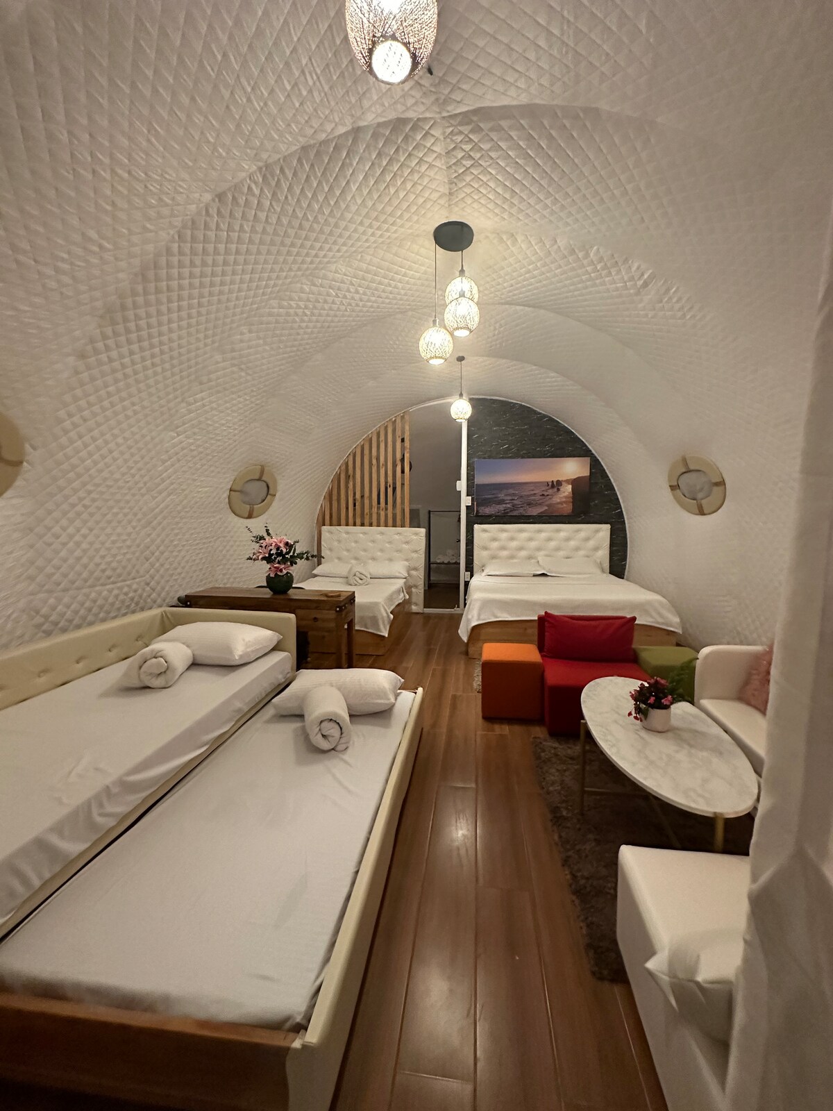 Matatagpuan sa magagandang tanawin ng Mantalongon, ang The Campgrounds ay isang tahimik na retreat na 1.7 kilometro lamang mula sa Osmeña Peak—perpekto para sa mga bisitang naghahanap ng kalikasan na may kaginhawaan. Nag‑aalok ang Safari Suite ng nakakarelaks na glamping experience na may mga modernong amenidad na mainam para sa mga magkarelasyon, pamilya, o munting grupo.