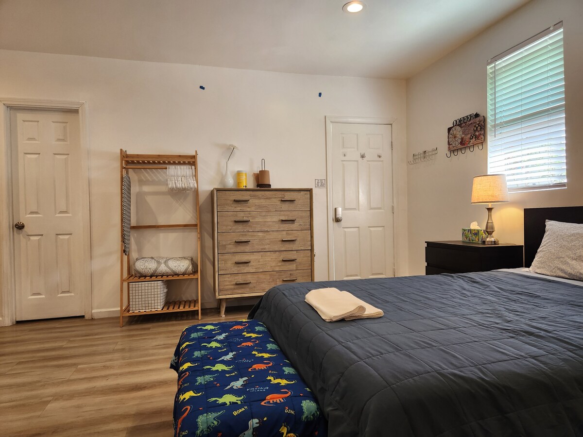 Maligayang pagdating sa aming komportableng guesthouse sa Mira Mesa sa San Diego! Perpekto ang pribadong suite na ito na may sukat na 600 sq ft para sa mga pamilya, mga kaibigan, at mga pamamalaging mainam para sa alagang hayop. Mag-enjoy sa bagong sofa bed (Setyembre 13, 2025) at sa mga kamakailang update kabilang ang side bed, dagdag na storage, bagong dekorasyon sa dingding, at mga kurtina (Marso 22, 2026). Mayroon ding maliwanag na workspace sa tuluyan na may mabilis na Wi-Fi—perpekto para sa pagtatrabaho nang malayuan. Madaling puntahan dahil malapit ito sa Freeway 15, at 15–20 minuto ka lang papunta sa mga beach, downtown, at mga nangungunang atraksyon sa San Diego.
