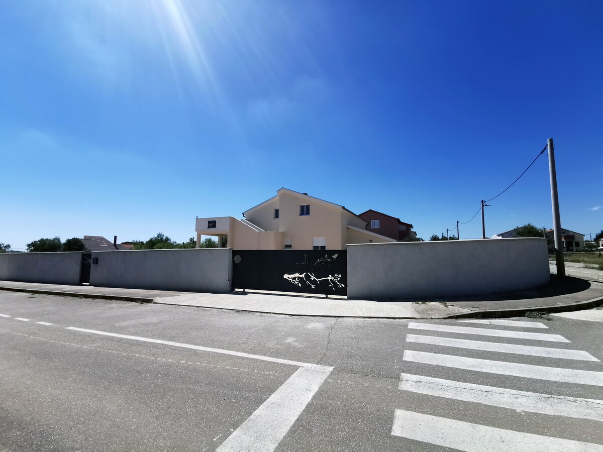 Matatanaw sa Villa Aurana ang Lake Vrana at ang Dagat Adriatiko. Matatagpuan ang bagong itinayong villa sa tahimik na lokasyon, 5 km lang ang layo mula sa mga unang beach,at nasa malapit ang mga bayan ng Zadar, Sibenik at Biograd. Air conditioning ang lahat ng kuwarto at silid - tulugan. Una sa lahat, siyempre,ang pool ay may mga mapagbigay na sukat,at maaaring maiinit kung gusto mo. Ang kusina at Grill sa tag - init para maghanda ng masasarap na pagkain, siguradong magsasaya ang mga bunsong bisita sa palaruan ng mga bata o sa Playstation. May 4 na paradahan na mapagpipilian.