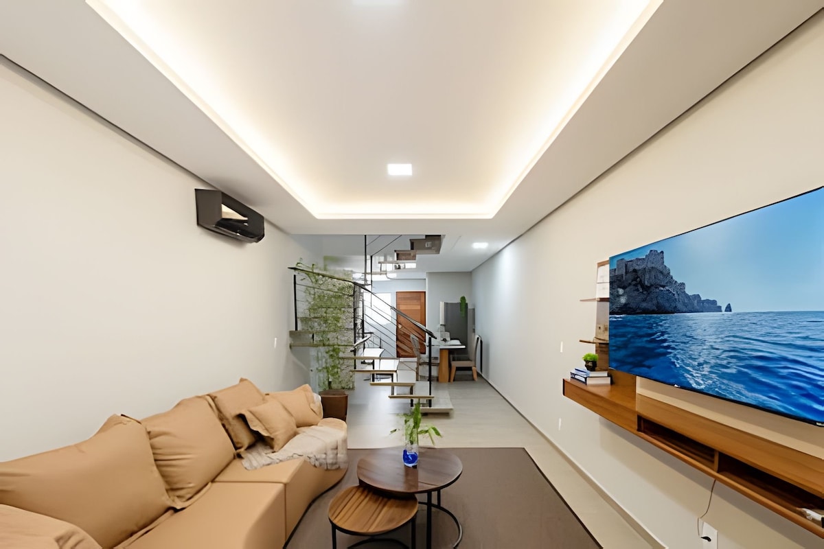 - Bagong apartment (Jan / 18), duplex, silid - tulugan na may air conditioning, box queen bed, closet at hanger, sofa bed, balkonahe na may barbecue at tangke. - May kasamang bed linen, mga tuwalya at kumot. - Meeting room, party room, gym, swimming pool at sinehan.