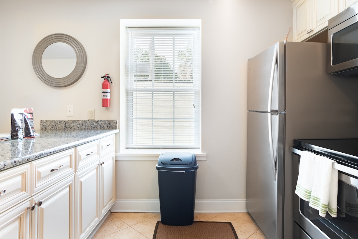 Batiin ang araw sa isang na - update na naka - tile na banyo na may lahat mula sa twin vanity hanggang sa pinagsamang rain shower at tub. Sa ibang lugar, ang gleaming puting interior ay offset na may mga splash ng kulay, mula sa mga karpet hanggang sa mga accent sa dingding, kasama ang flagstone at sahig na gawa sa kahoy. Nag - aalok ang tuluyang ito ng 1000 talampakang kuwadrado ng espasyo para makapaglatag at makapagrelaks. May cable, wifi, at kusinang kumpleto sa kagamitan kabilang ang microwave, tea kettle, at coffee machine, magkakaroon ka ng lahat ng kaginhawaan ng tuluyan. Ang mga bisita ay may ganap na access sa likod - bahay. Irespeto ang tahimik na oras pagkatapos ng 9 pm. Ang tuluyan, sa klasikong estilo ng New Orleans, ay nahahati sa dalawang magkahiwalay na tirahan, na may nakabahaging bakuran. Nakatira ako sa kabilang bahagi ng duplex kasama ang aking matamis na pinaliit na goldendoodle, Willie Nelson. Mas masaya akong makipag - ugnayan o bigyan ka ng privacy. Matagal na akong nakatira sa New Orleans at makakapag - alok ako ng anumang impormasyong kailangan mo tungkol sa lungsod. Ang Seventh Ward/Tremé ay nakikita ng marami bilang kakaibang kapitbahayan ng lungsod ng Creole. Tahanan ng mga musikero, pulitiko, artist, at aktibista; malapit ito sa City Park, Degas House, Free People of Color Museum, at 20 -30 minutong lakad o mabilisang Lyft/Uber mula sa French Quarter. Mga coffee shop at lokal na pagkain sa malapit. Ang kapitbahayan ay isang tunay, masaganang magkakaibang kapitbahayan, para sa mga bihasang biyahero, sa labas ng mga tradisyonal na tourist spot ng Bourbon Street at Garden District. Libre ang paradahan sa kalye at palaging may sapat na paradahan. Ang paglalakad ng isang milya pababa sa Esplanade Ave sa French Quarter ay kaibig - ibig sa araw. Ang mga ride share at taxi ay inirerekomenda sa lahat ng dako sa New Orleans sa gabi, at ang pamasahe mula sa Maison Laharpe hanggang sa Quarter ay wala pang $10, 5 -7 minuto. Malapit ang mga ruta ng bus, tulad ng mga matutuluyang Blue Bike. Higit pang impormasyon tungkol sa mga ito at makikita ang mga streetcars sa gabay ng bisita sa tuluyan. Ito ay isang tradisyonal na shotgun style house na natatangi sa New Orleans. Ito ang pinakakaraniwang uri ng bahay na makikita mo sa buong lungsod. Malapit ang lokasyon sa sikat na kapitbahayan ng Treme at maginhawang maglakad papunta sa mga lokal na restawran at grocery store sa Esplanade Avenue, isa sa pinakamagagandang kalye sa lungsod. Maaari ka ring kumuha ng murang Uber o Lyft isang milya sa hilaga sa City Park o isang milya sa timog sa French Quarter/Bywater o Downtown CBD/Warehouse District. Available din ang mga lokal na city rental bike sa Esplanade at magandang paraan ito para makita ang lungsod. Bawal ang paninigarilyo, mga party, o mga alagang hayop. Ang Seventh Ward/Tremé ay nakikita ng marami bilang kakaibang kapitbahayan ng lungsod ng Creole. Ang magkakaibang, makasaysayang kapitbahayan ay tahanan ng mga sikat na musikero, pulitiko, artist, at aktibista; malapit ito sa City Park, Degas House, ang Free People of Color Museum, at 20 -30 minutong lakad o mabilis na Lyft/Uber mula sa French Quarter. Mga coffee shop at lokal na pagkain sa malapit. Ang kapitbahayan ay isang tunay na kapitbahayan ng NOLA, sa labas ng mga tradisyonal na tourist spot ng Bourbon Street at Garden District.