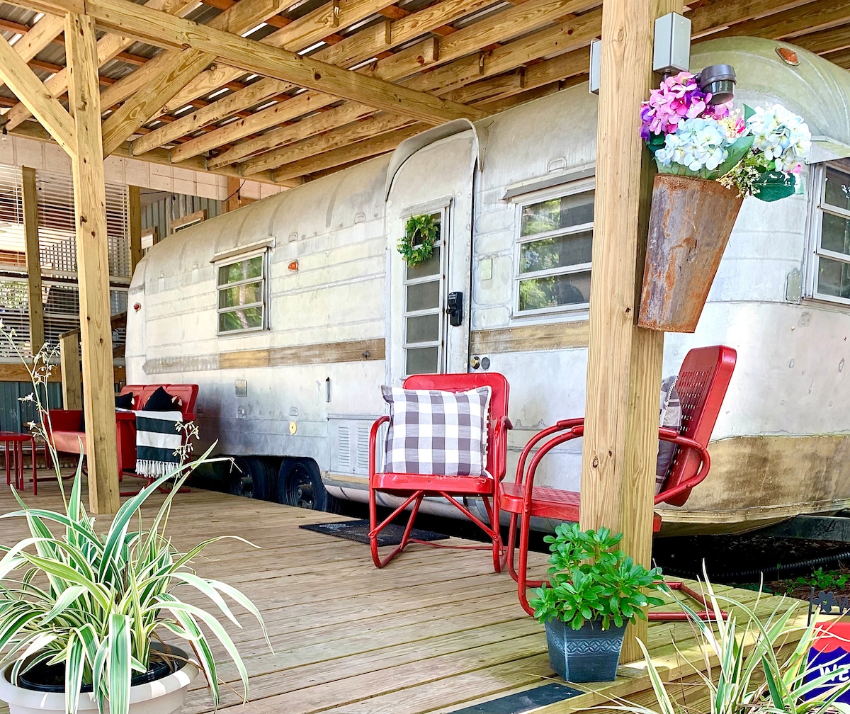 Ganap nang na - renovate ang Vintage Airstream na ito para maibalik ito sa dating kaluwalhatian nito! May kumpletong sukat na higaan at memory foam futon para mapaunlakan ang 4. Mayroon kaming gas cooktop, air fry microwave oven combo at outdoor gas grill para maghanda ng perpektong pagkain sa camping. Mayroon kaming 2 TV sa loob at 1 sa labas. May kahanga - hangang sound system para makinig sa mga paborito mong kanta. Ang pinakamagandang bahagi ng karanasan sa Glamping na ito ay ang magandang lugar na paliligo sa labas na perpekto para sa pagrerelaks!