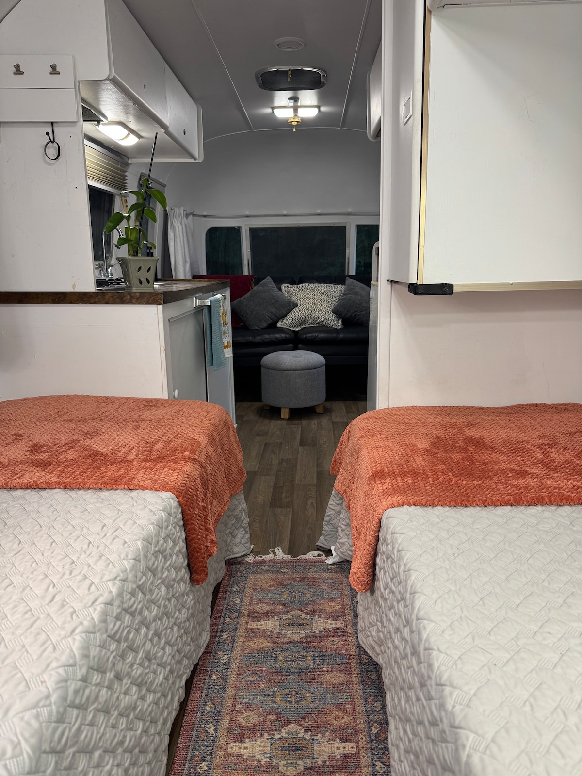 Manatili sa bagong ayos na 1967 Streamline vintage camper! 10 minuto ang layo namin mula sa bayan, pero magiging tahimik at magugubat na bakasyunan ang iyong pamamalagi. Kung ibu - book ang camper na ito, tingnan ang iba pa naming vintage camper sa parehong property! Sundan kami sa Insta! @hattiesburgvintagecampers Deck Wifi 2 Mga Kumpletong Higaan 1 Sofa/Bed Partial Kitchen (walang cooktop) Mga ROKU TV sa Banyo ng Coffee Station 10 min sa anumang lugar sa Hattiesburg 3 minutong lakad ang layo ng Camp Shelby. 10 minutong lakad ang layo ng Paul B. Johnson State Park.